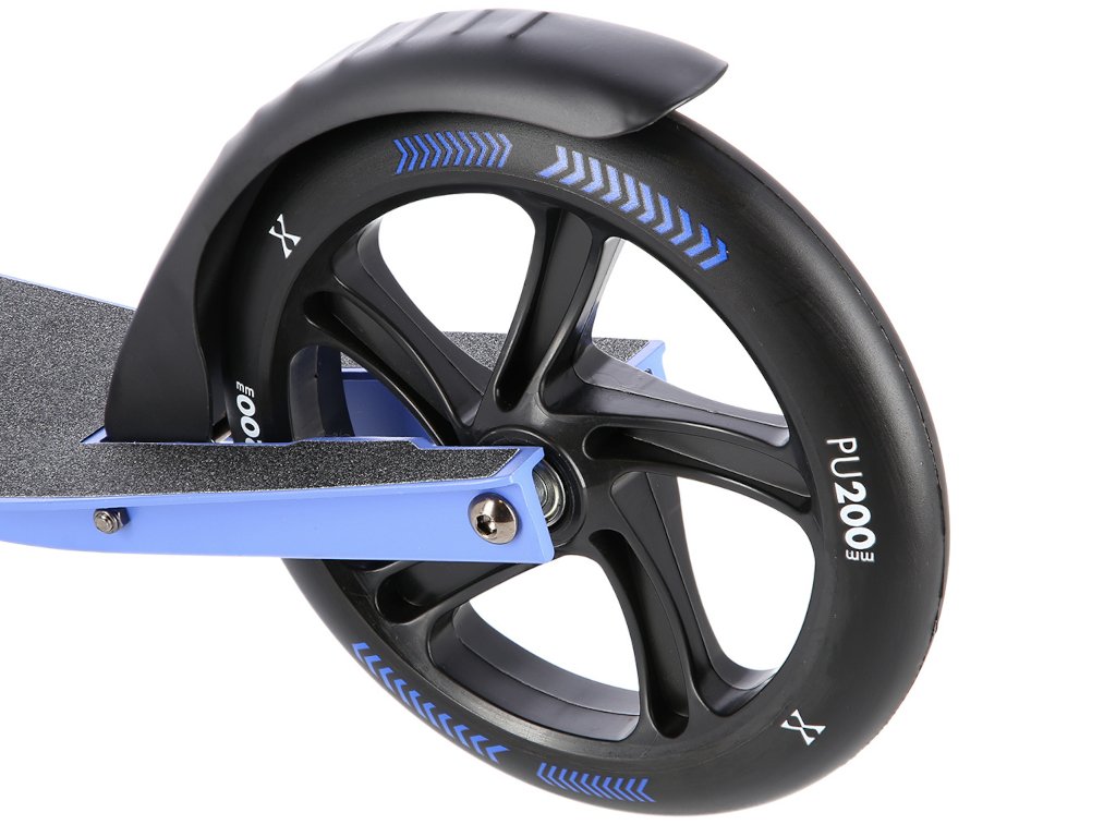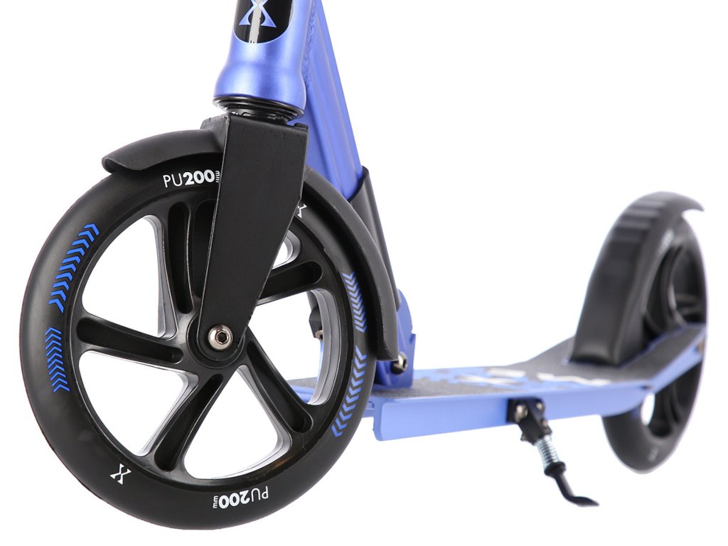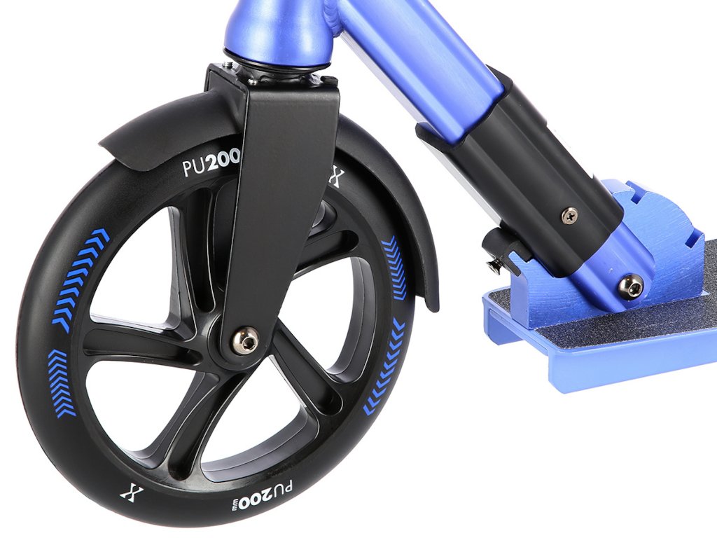 Zadný blatník slúži ako prítlačná brzda. Široká riadidlá sú opatrené gumovými rukoväťami, ktoré zaisťujú pevný a pohodlný úchop. 200 milimetrov veľké kolesá sú osadené ložiskami ABEC 9. Táto kombinácia zabezpečuje rýchlu, plynulú a bezpečnú jazdu. Blatník na prednom kolese a skladacie stojanček sú drobnosťami, ktoré prispievajú k maximálnemu možnému komfortu z jazdy a k celkovej radosti zo samotného používania modelu MH205.