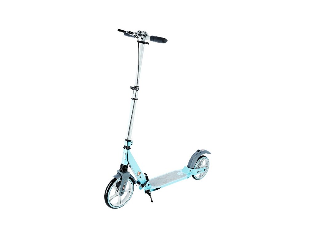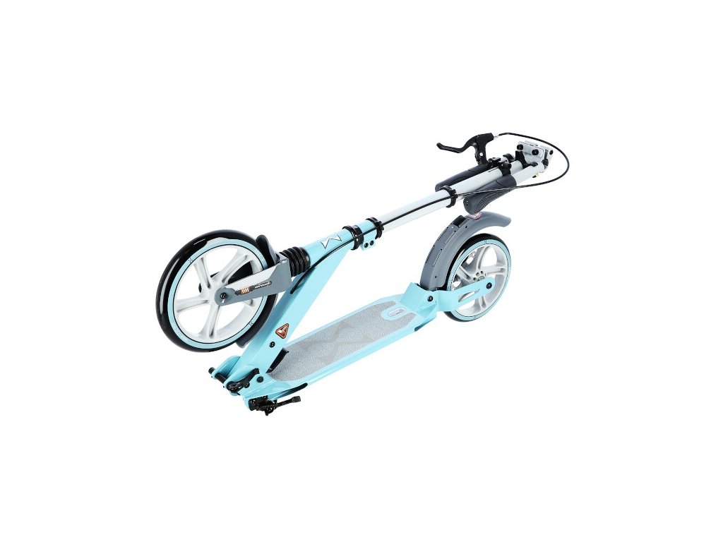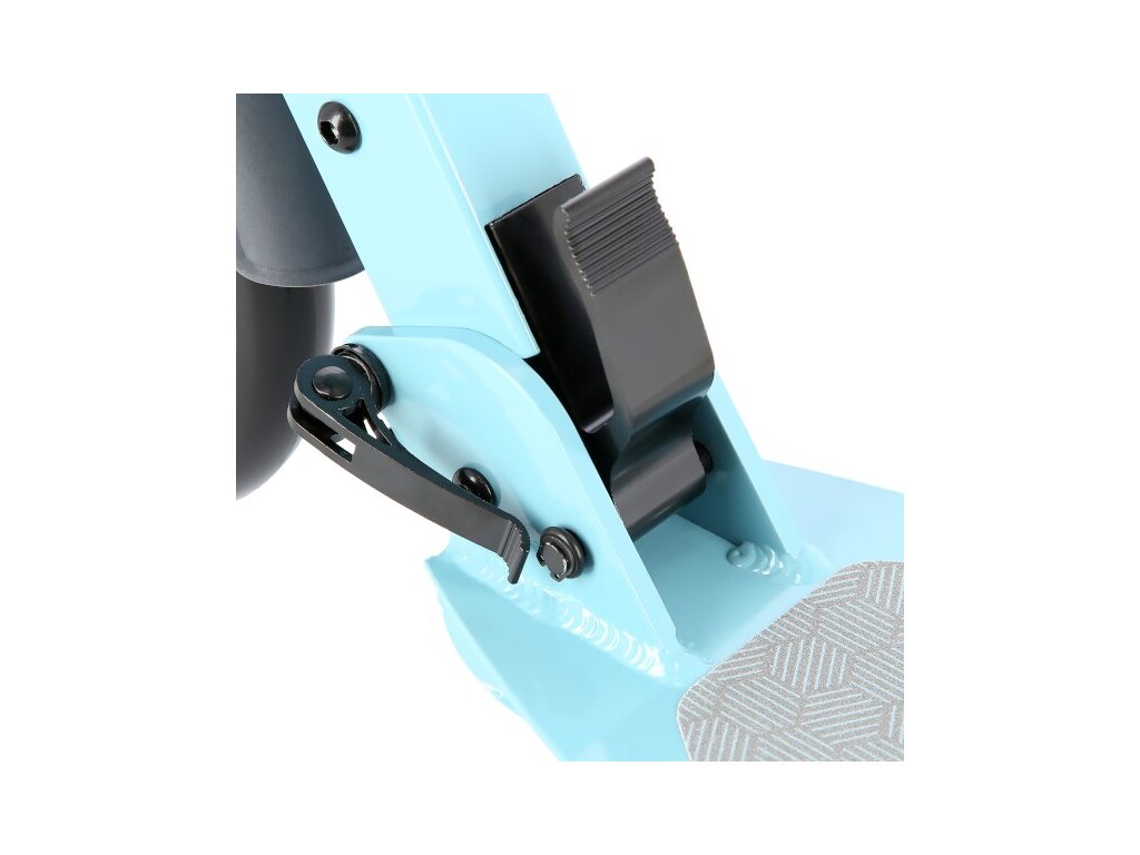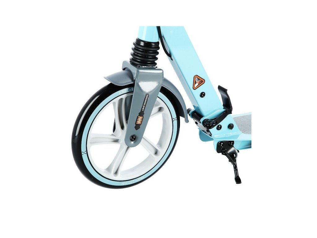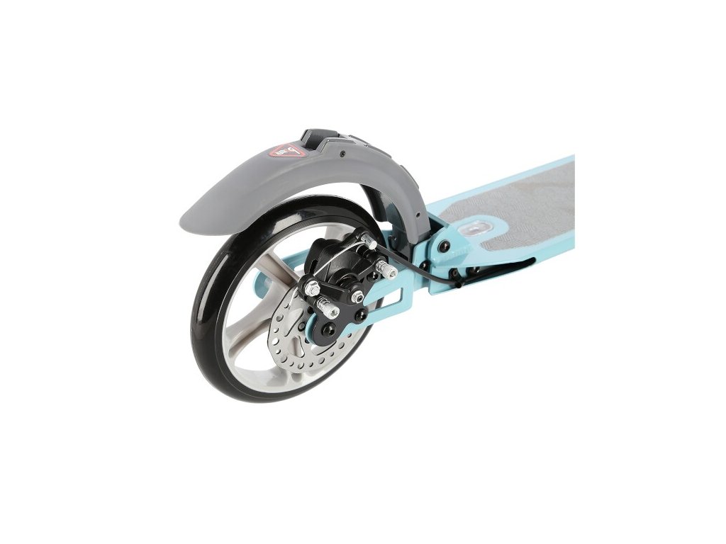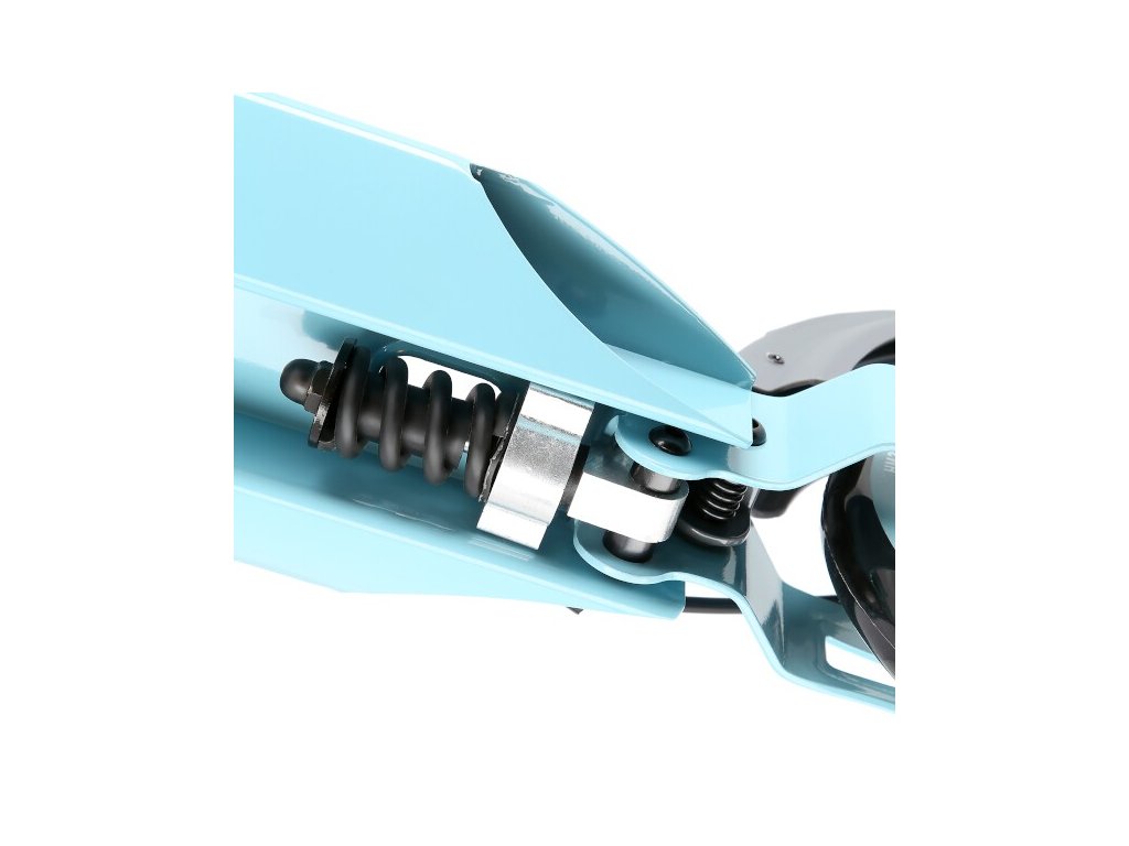 Systém odpruženia zvyšuje jazdný komfort. Tlmiče pohlcujú nárazy a jazda po nerovnom asfalte, alebo dlažobných kockách je príjemnejšie a tichšiu. Robustný zadný blatník slúži ako nožný, prítlačná brzda, pod blatníkom sa skrýva samostatná, malá brzda, ktorá je ovládaná páčkou z riadidiel. Riadidlá sú opatrené gumovými rukoväťami, ktoré zaisťujú pevný a pohodlný úchop. Veľké kolesá sú osadené ložiskami ABEC 9. Táto kombinácia zabezpečuje rýchlu, plynulú a bezpečnú jazdu. Blatník na prednom kolese ochráni pred znečistením pri prejazde cez kaluže.