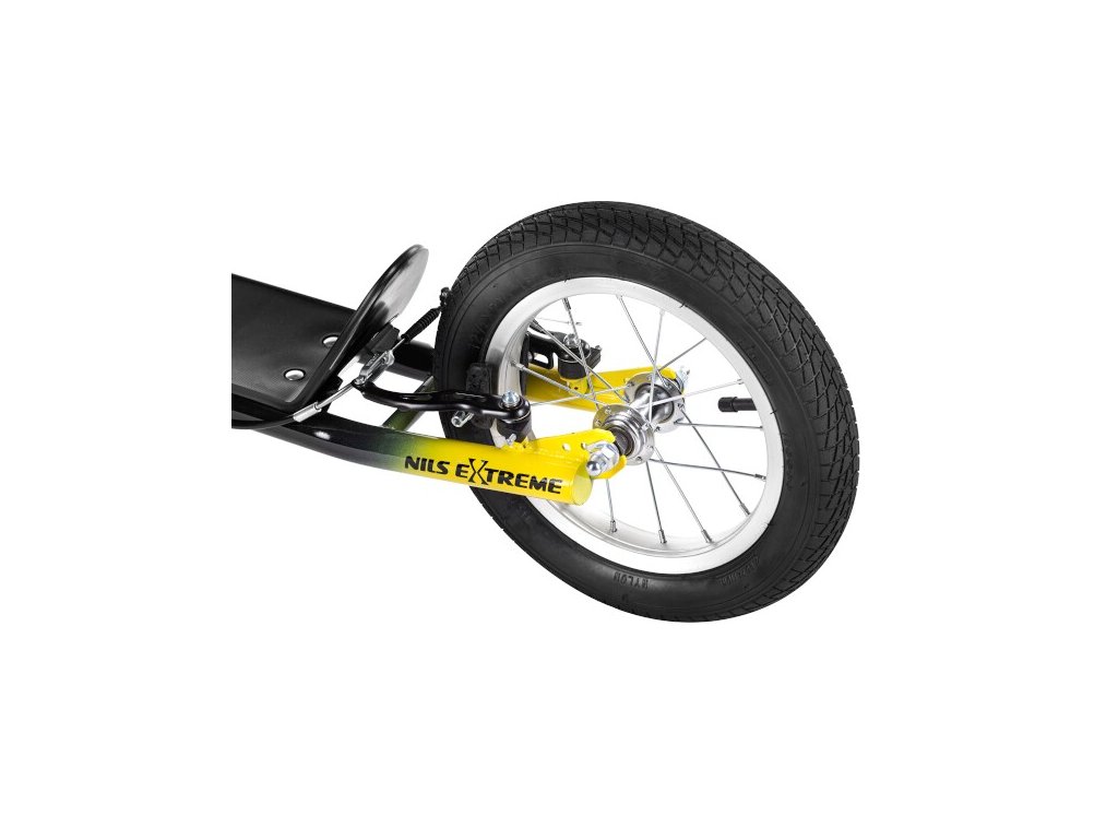 Kolobežka NILS Extreme WH118A má nosnosť 80 kilogramov a je tak určená pre deti a dorast. Rám, vidlice a riadidlá sú vyrobené z kvalitnej ocele. 16" a 12", hliníkové ráfiky sú obuté pumpovanými pneumatikami, ktoré zaručujú vysoký jazdný komfort a ľahké prekonávanie drobných nerovností. Model WH118A je teda ideálnou voľbou pre jazdu po asfaltových cestách, dláždených mestských uličkách, ale aj po lesných chodníkoch.