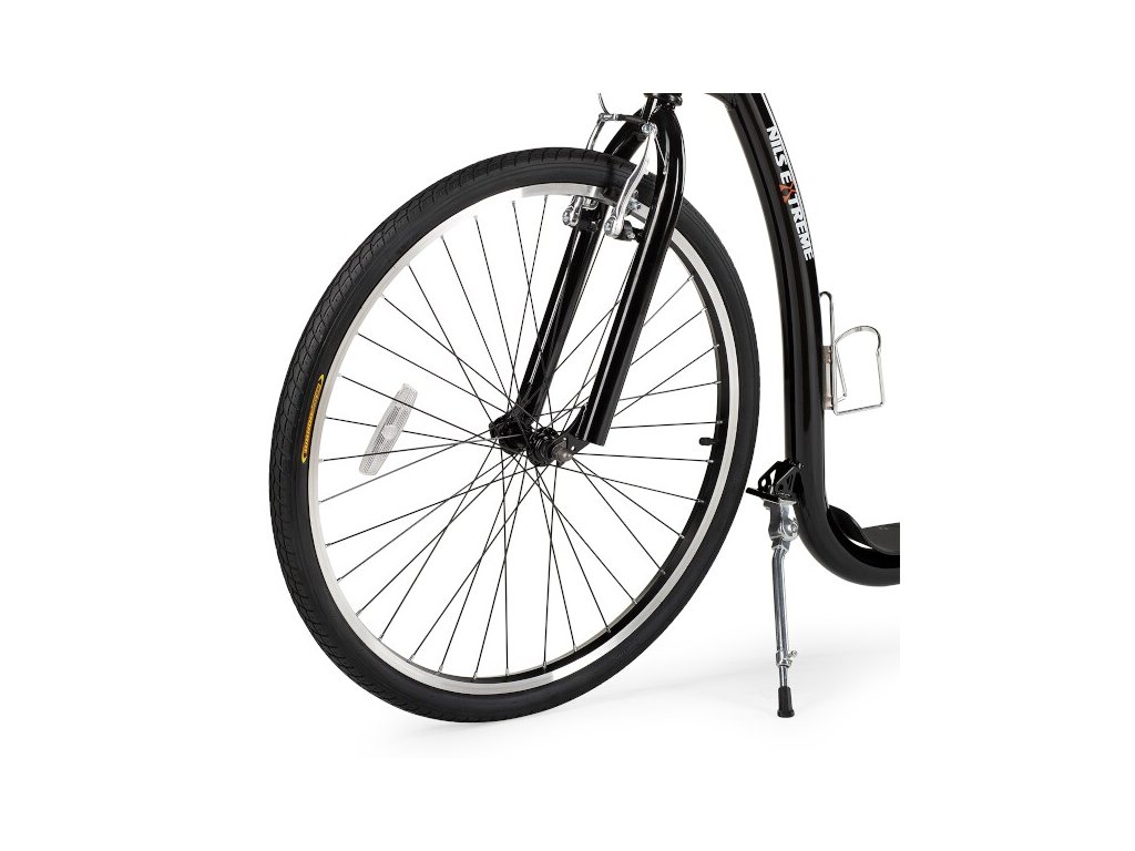 - predné koleso: hliníkový ráfik, 26 "nafukovacia pneumatika, mechanická brzda typu V-brake