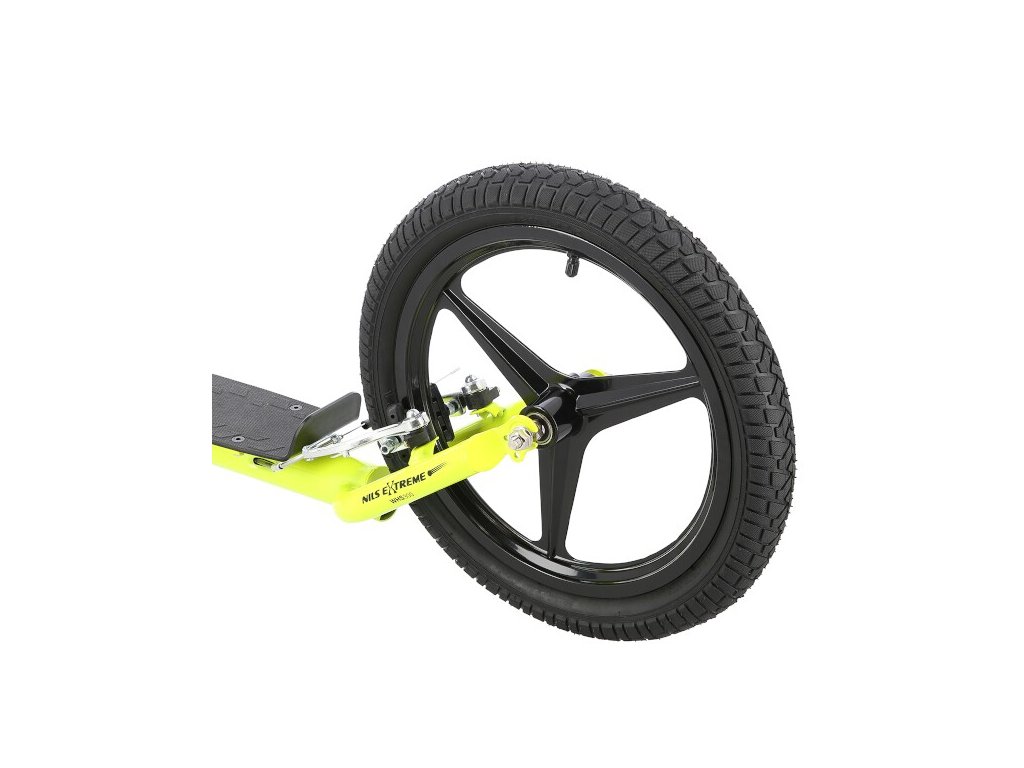 - predné koleso: hliníkový ráfik, 20 " nafukovacia pneumatika, mechanická brzda typu V-brake