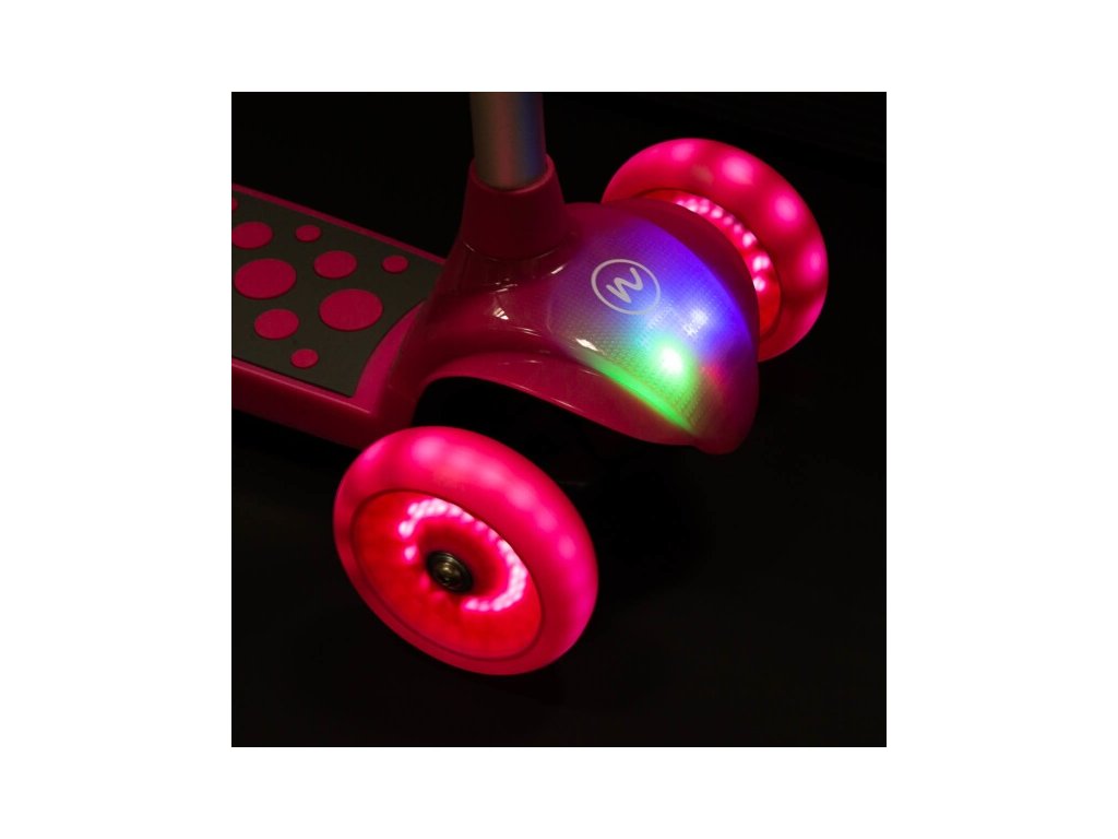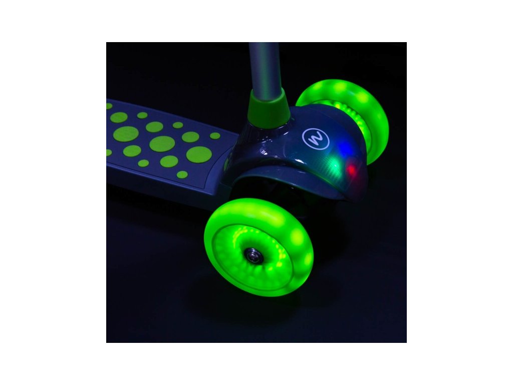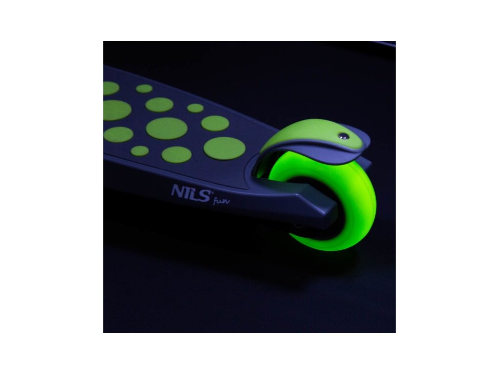 Kolobežka NILS Fun HLB02 má kolieska vybavené LED svetlami, ktoré slúžia ako zaujímavý, vizuálny prvok, zvyšujú záujem detí a v neposlednom rade zvyšujú viditeľnosť kolobežky napríklad za súmraku. Kolieska sa počas otáčania automaticky rozsvietia.