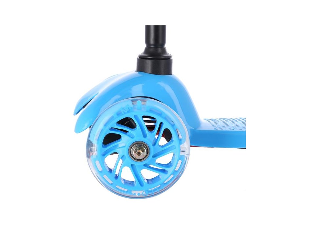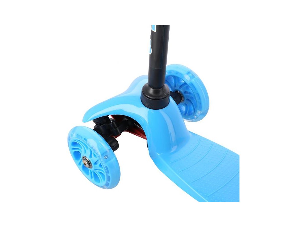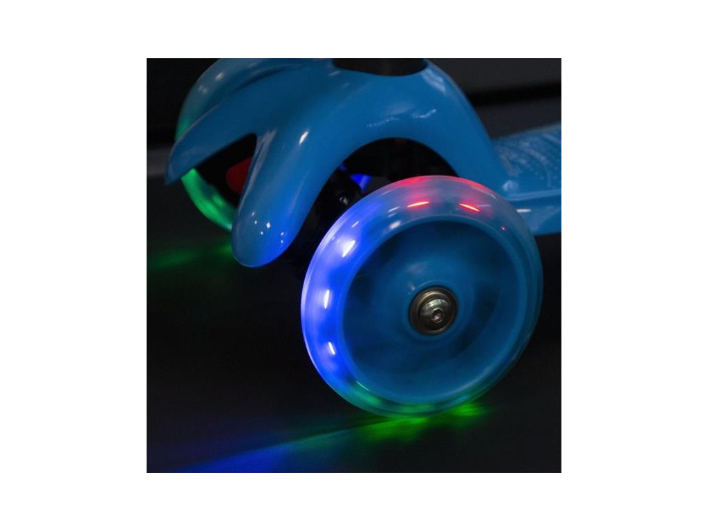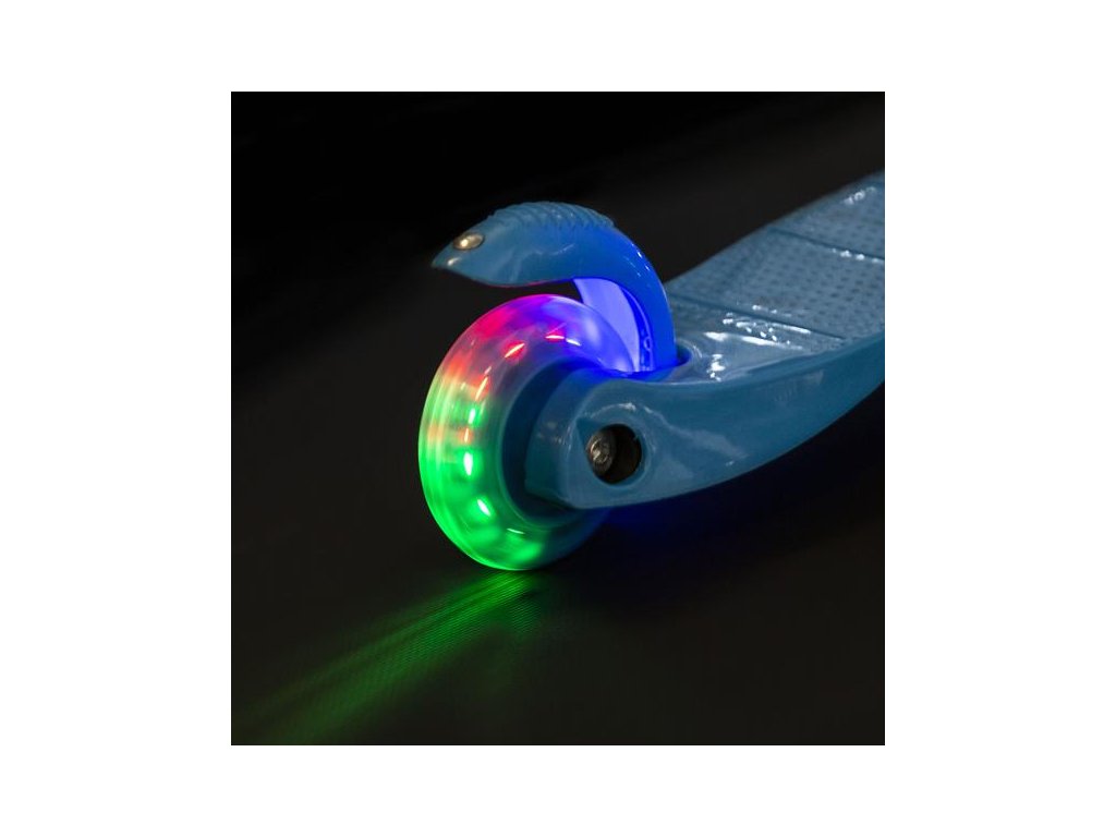 Tri kolieska sú garanciou vysokej stability. Vďaka riadenie pomocou naklápania je kolobežka maximálne bezpečná a nehrozí jej prevrhnutie. Teleskopická riadidlá slúži primárne pre udržanie rovnováhy. Zadná zdvojené koliesko je opatrené širokou brzdou a navyše je uložené v silentbloku pre tlmenie drobných nerovností. Svietiace kolieska sú osadené ložiskami ABEC7. Kolobežku najlepšie využijete počas jazdy po rovnom, spevnenom povrchu.