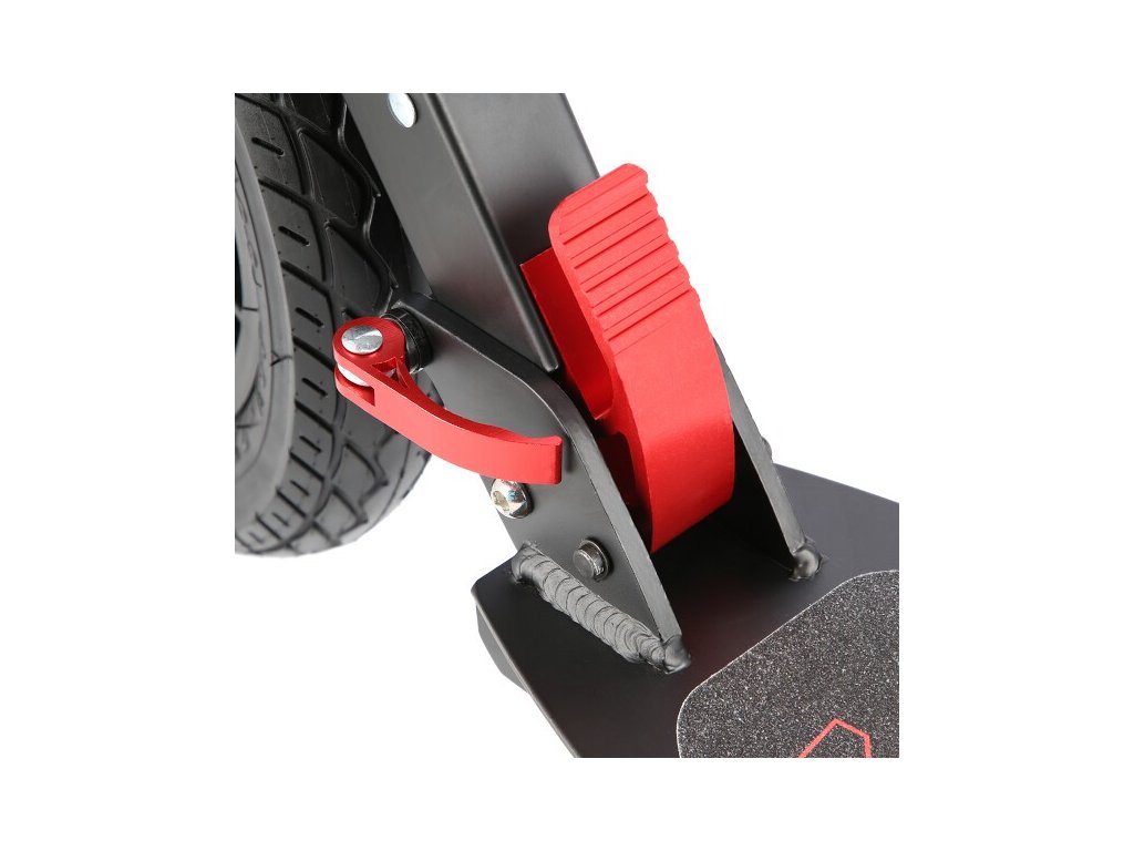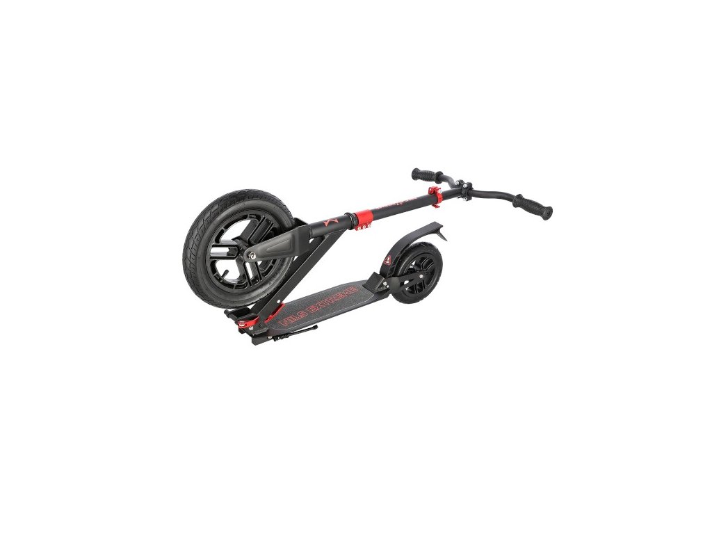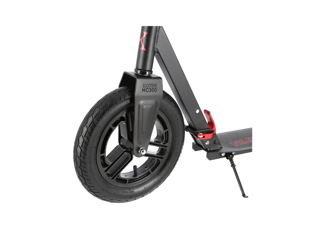 Kolobežka NILS Extreme HC300 je kombináciou klasickej a skladacie kolobežky, ktorá si poradí s klasickými nástrahami mesta, ako sú napríklad priehlbiny a pätníky. Pumpovanie kolesá sú ideálne pre dláždené chodníky, pneumatika sa prispôsobí podkladu a aj jazda po takzvaných "mačacích hlavách" bude príjemná a tichá. 20-tich centimetrové zadné koleso je osadené vodorovným tlmičom, ktoré tak má takmer rovnaký účinok tlmenia, ako 30-tich centimetrové predné koleso. Ako brzda slúži robustný, hliníkový blatník, ktorý stačí iba prišliapnuť a kolobežka začne okamžite spomaľovať. Kolobežka HC300 je vybavená skladacím mechanizmom, kedy po sklopení riadidiel môžete s kolobežkou pohodlne cestovať mestskou, hromadnou dopravou a alebo si môžete kolobežku uložiť do kufra Vášho vozidla. Riadidlá sú zakončená pohodlnými, gumovými gripy pre pevný a pohodlný úchop. Samotné riadidlá možno mierne predsadiť pre väčšiu istotu počas jazdy. Skladací stojan je potom už len pomyselnou "čerešničkou na torte".