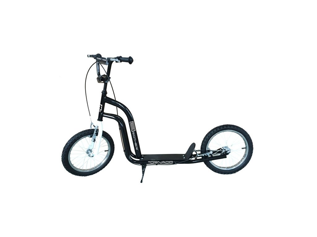Kolobežka Tornado pre deti i dospelých, ktorá má obe kolesá veľké 16 ", preto je vhodná na spevnené cesty. Vďaka ideálnej veľkosti oboch kolies nie je jazdenie na dlhšie trate, tak únavné a môžete si môžete si užiť väčší pôžitok z jazdy.