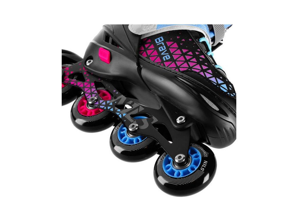 Polyuretánové kolieska zaisťujú plynulú a rýchlu jazdu a účinne vyrovnávajú nerovnosti terénu. Vďaka použitiu presných ložísk ABEC-7, ktoré minimalizujú trenie, si užívatelia môžu užívať plynulú jazdu s minimálnou námahou. Korčule NA18190A Brave je možné navyše vďaka nastaviteľnej veľkosti používať viac sezón a prispôsobiť ich meniace sa veľkosti nohy užívateľa. Vďaka tomu korčule účinne "rastú" s korčuliarom a zaisťujú dlhodobé používanie a prispôsobenie.