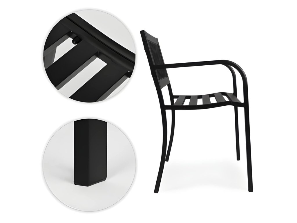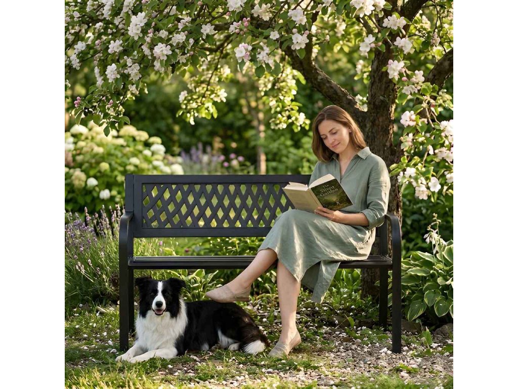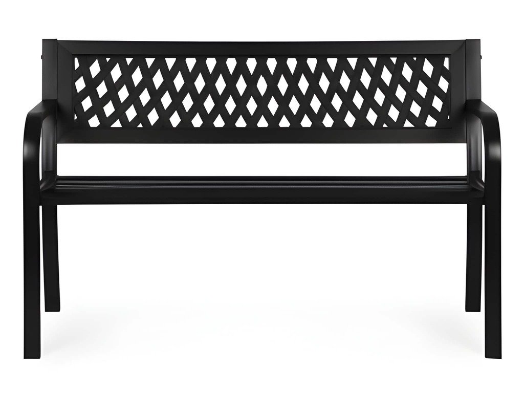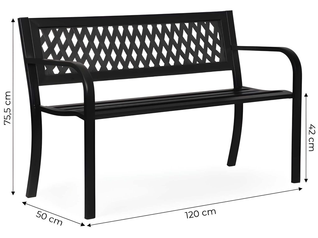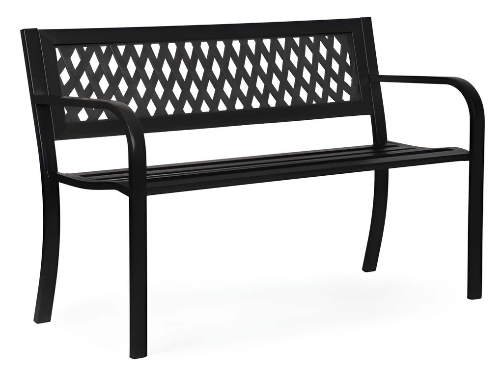 Táto záhradná lavica s operadlom je určená do záhrad, na terasy a balkóny. Konštrukcia je vyrobená z práškovo lakovanej ocele, ktorá zvyšuje odolnosť voči korózii, mechanickému poškodeniu a meniacim sa poveternostným podmienkam. Operadlo má dekoratívnu, prelamovanú výplň z odolného PVC, ktoré je odolné voči vlhkosti a vhodné na vonkajšie použitie. Protišmykové nožičky zlepšujú stabilitu a chránia podlahu pred poškriabaním. Tento model sa môže pochváliť univerzálnym, elegantným dizajnom, vďaka čomu je vhodný do klasických aj moderných interiérov. Maximálna nosnosť je 260 kg.