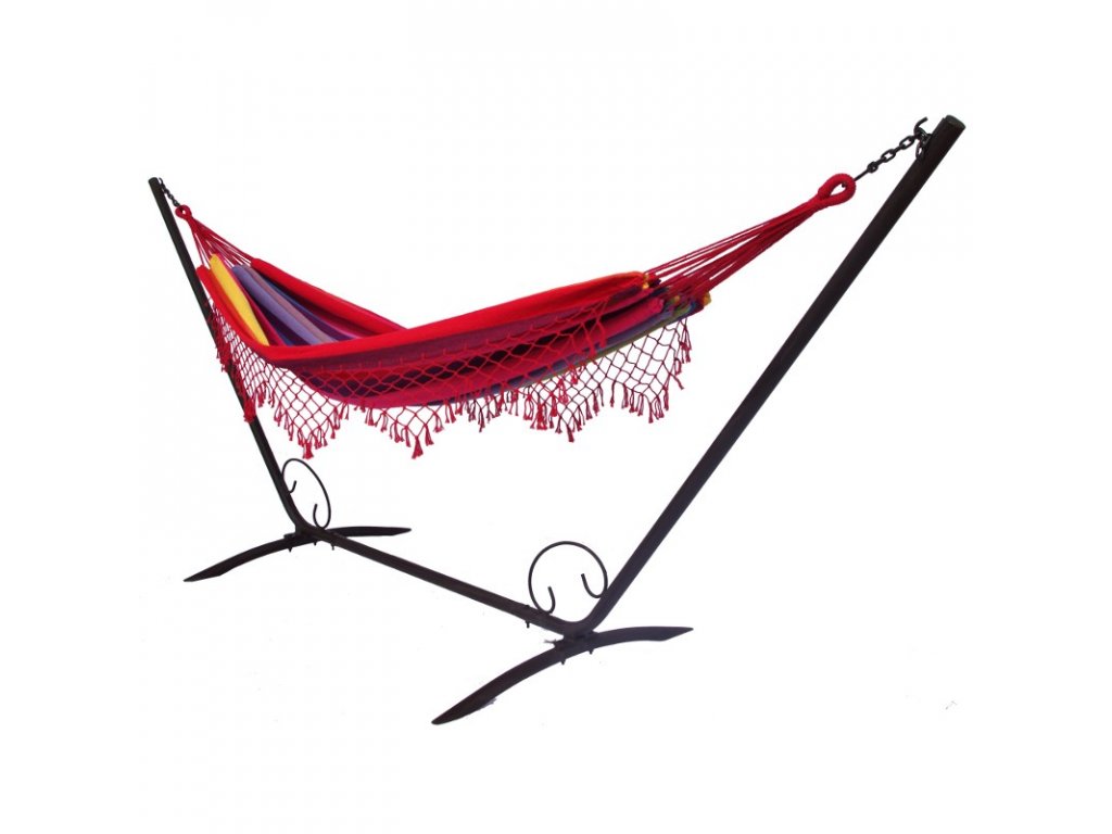Vkusný, celokovový stojan pre hojdacie siete je praktickým doplnkom do Vašej domácnosti alebo záhrady. S rozpätím 360 cm sa prispôsobí takmer každej sieti. Na upevnenie siete slúžia reťaze s háčikom na každej strane, ktorých nosnosť je 120 kg. Profil konštrukcie je 42 mm.