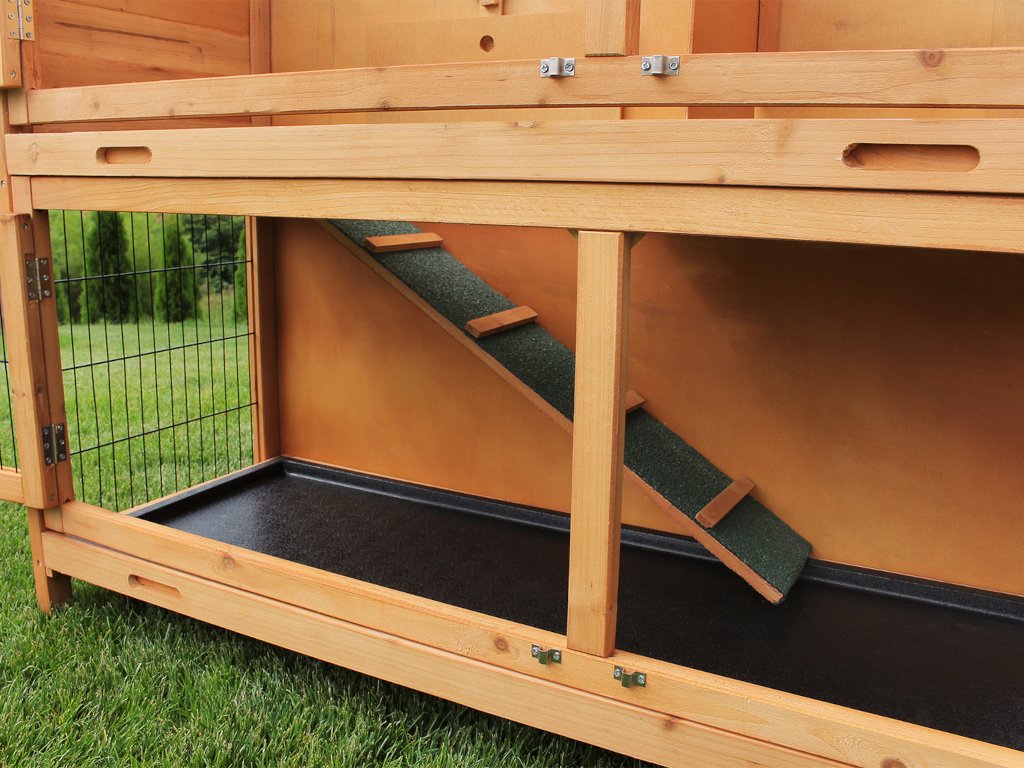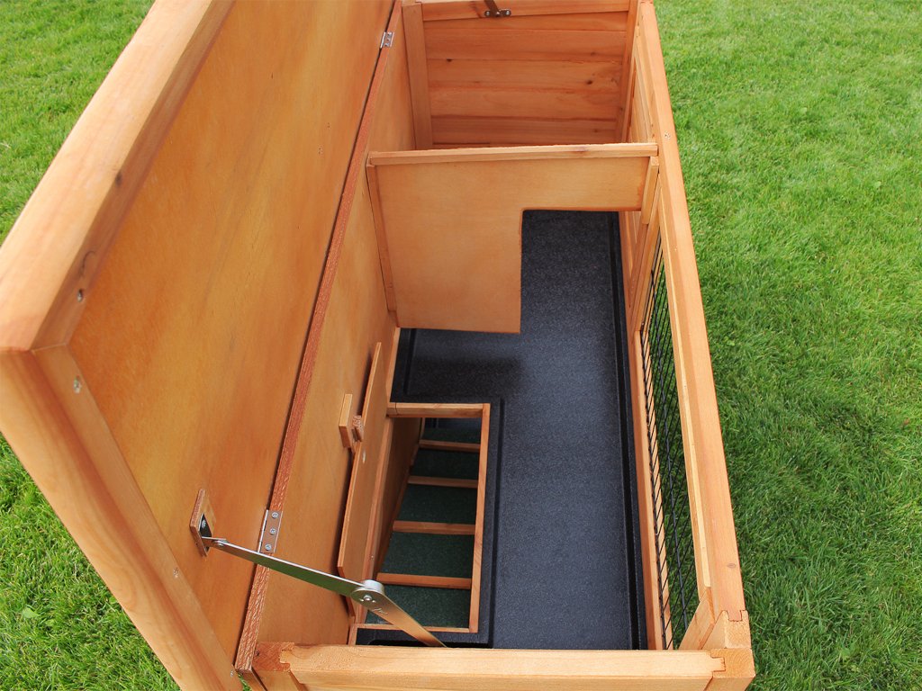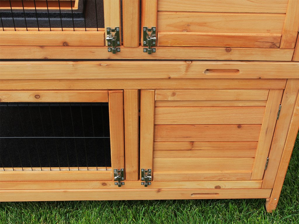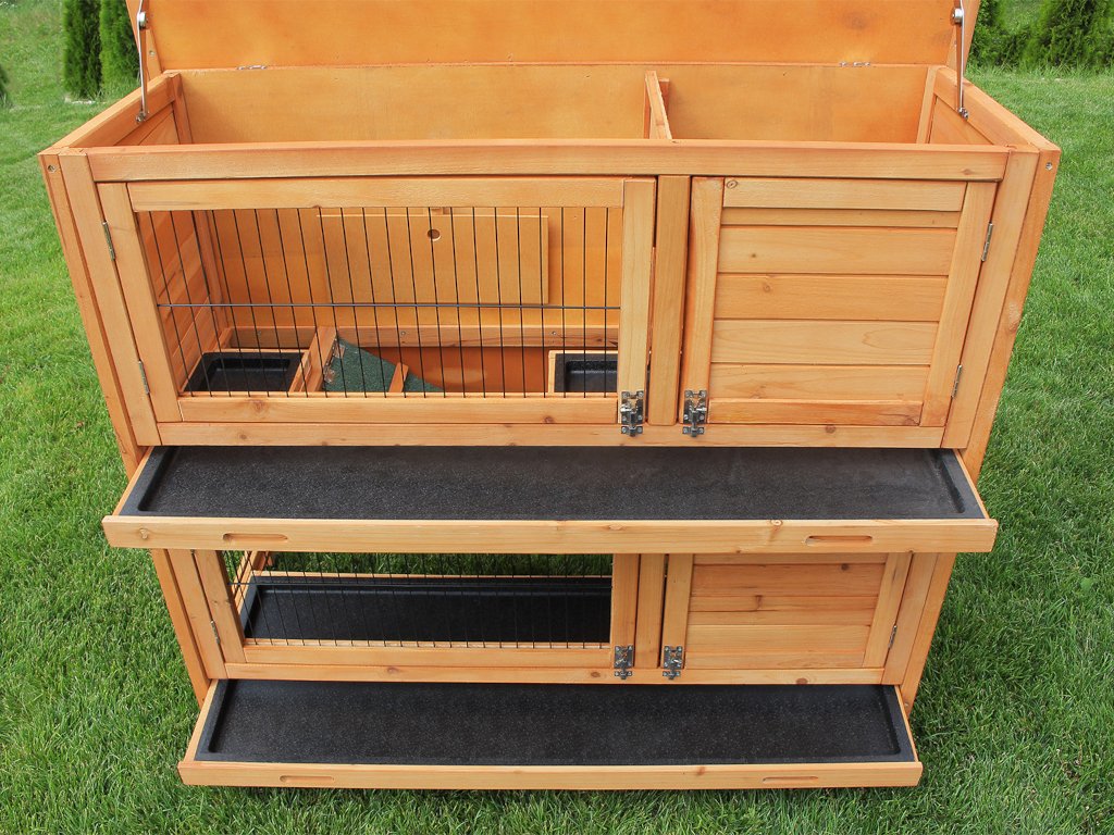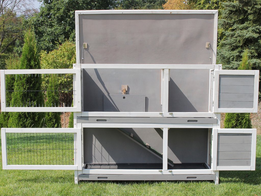 Štyri dvierka a otváracia strecha vám poskytujú dostatočný prístup do vnútra králikárne. Vďaka tomu sa dostanete aj do najvzdialenejšieho rohu.