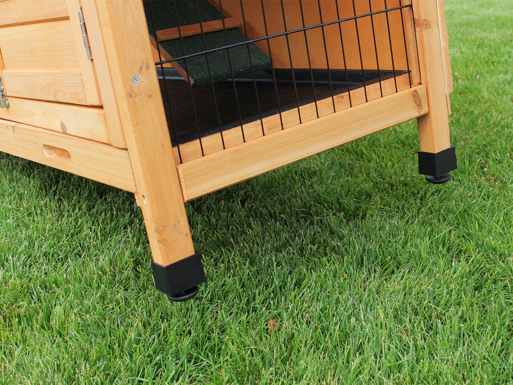 Našli ste to správne miesto? Vďaka stabilným nohám sa králikáreň flexibilne prispôsobí nerovnému povrchu.