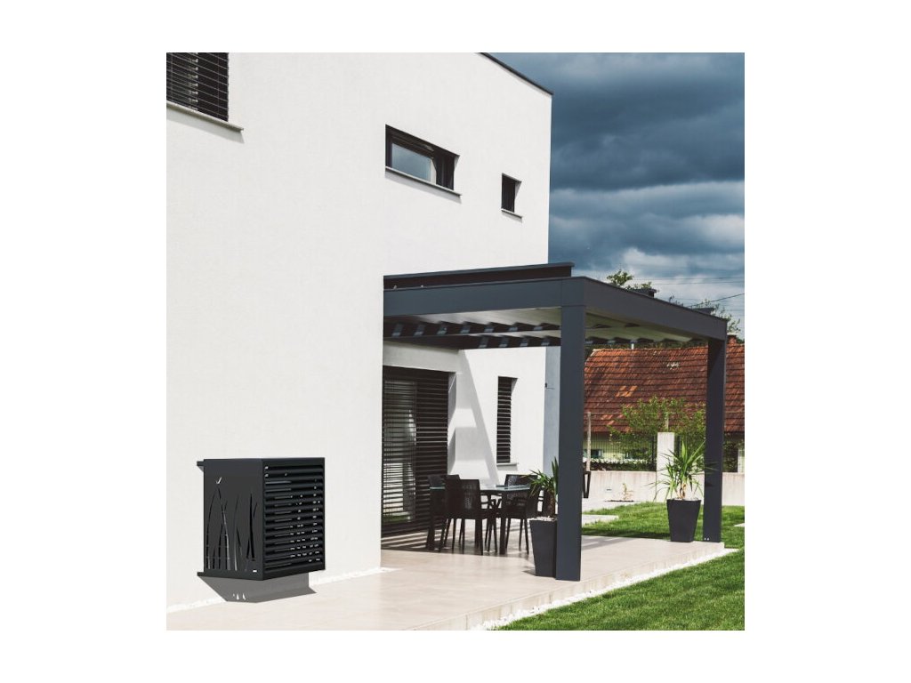 Inštalácia krytu DECOAirco tiež znižuje hlučnosť zariadenia. Lamely sú navrhnuté tak, aby smerovali zvukové vlny k zemi, a kryt akusticky izoluje hluk generovaný tepelným čerpadlom.