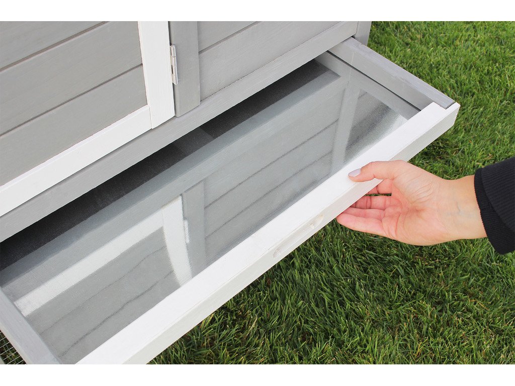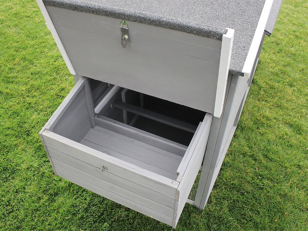 Pomocou výsuvnej zásuvky sa kurník jednoducho čistí. Hygiena je dôležitá aj pri chove zvierat. O to viac budete nadšení zo stavby kurníka: stačí vytiahnuť príslušnú zásuvku. Čistotu a poriadok možno ľahko udržiavať - ako v kurníku, tak aj na vašom trávniku!