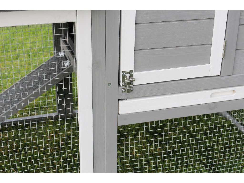 Kurník je obzvlášť bezpečný vďaka pozinkovanému drôtu s hustými okami. Ak ste oboznámení s chovom kurčiat, viete o nebezpečenstvách prirodzených predátorov. Patria sem líšky, kuny a dravé vtáky, ako sú jastraby. Tento kurník s výbehom ponúka vašim zvieratám účinnú ochranu bez toho, aby ich obmedzoval - predátori sú bezpečne držaní vonku vďaka stabilnému drôtenému pletivu.