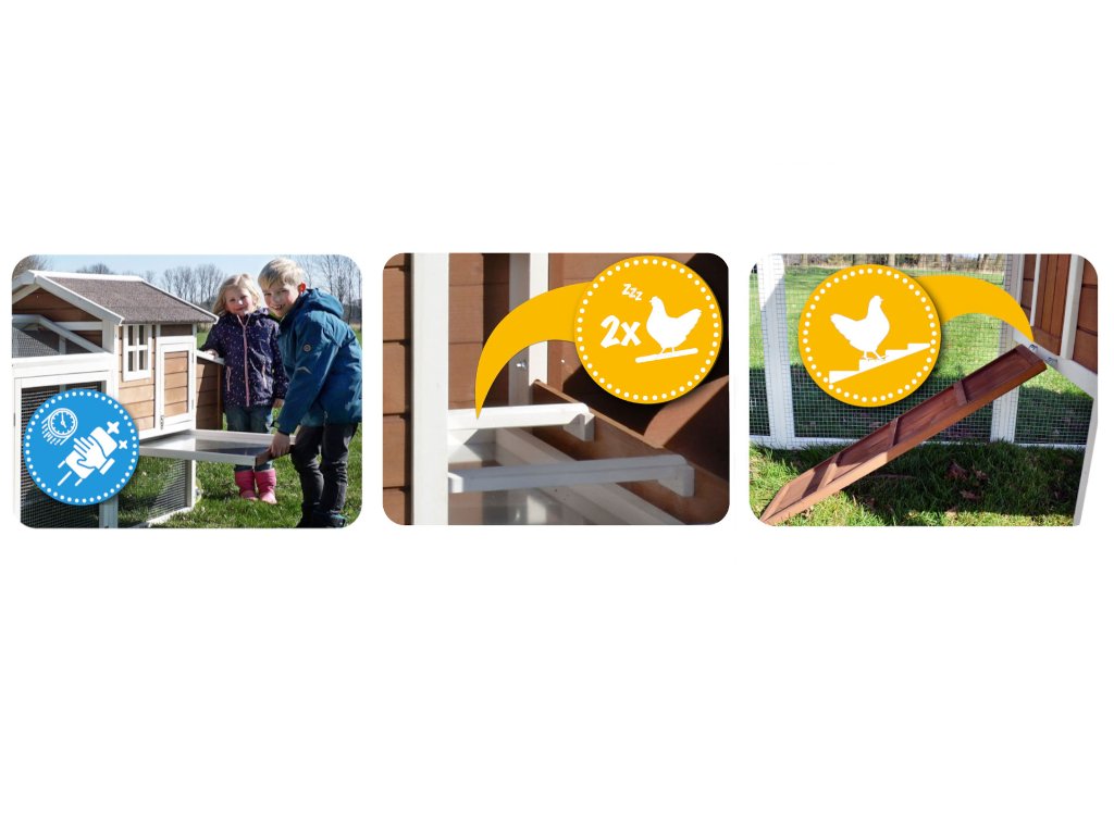 - jednoduchá údržba: Kurník vyčistíte veľmi ľahko vďaka vysúvateľnému šuflíku na trus.