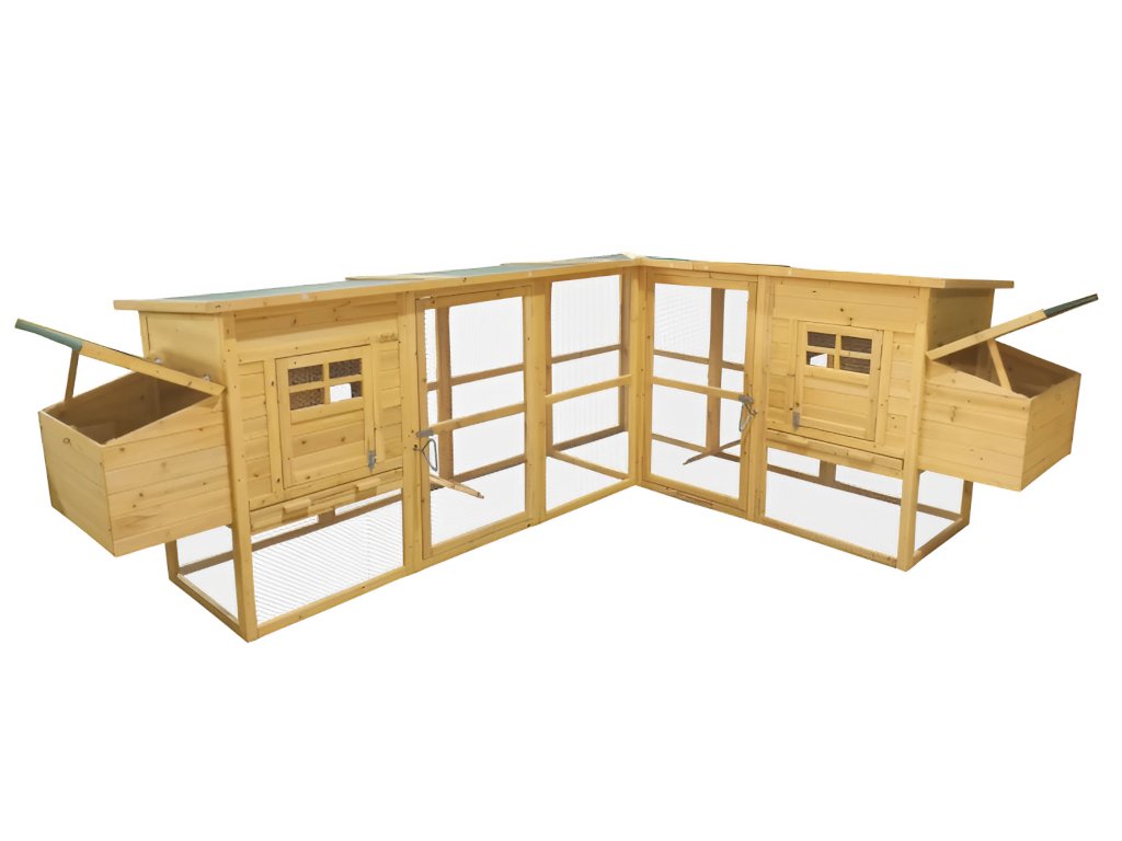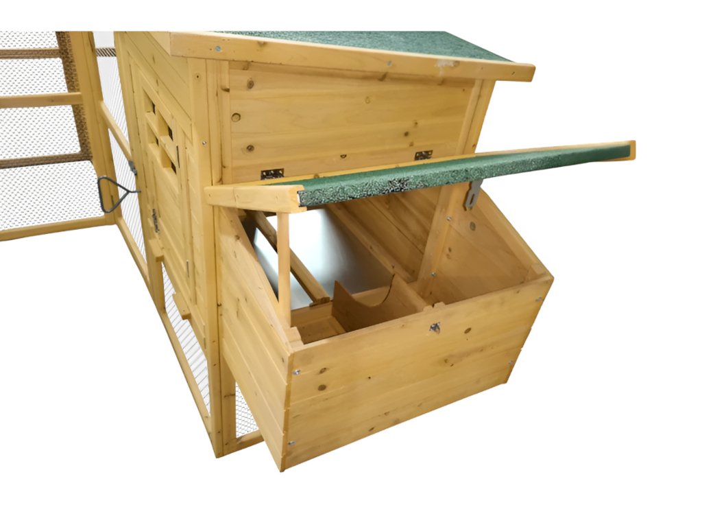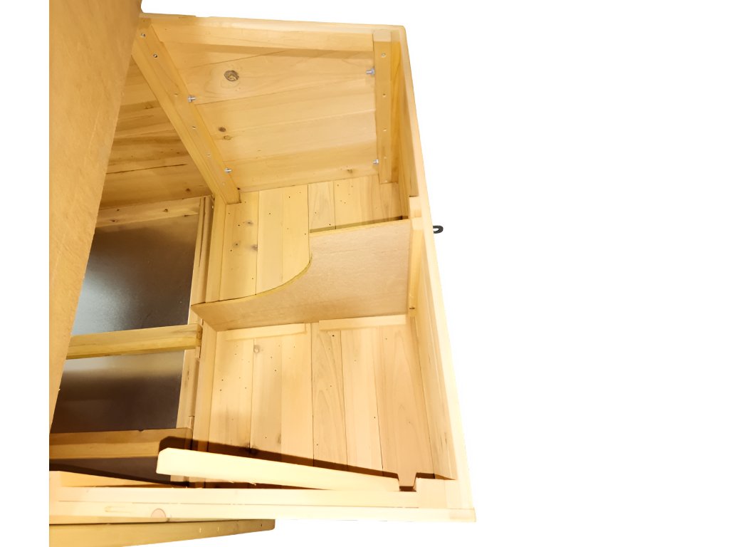 Predstavujeme priestranný maxi kurín v prírodnej farbe, vyrobený z kvalitného jedľového dreva. Navrhnutý pre 8-10 sliepočiek podľa ich veľkosti, tento kurín s odolnou drevenou konštrukciou poskytuje optimálne pohodlie pre vaše sliepočky. Kurín je veľmi priestranný a výbeh je oddelený od vnútorných priestorov posuvnými dvierkami s madlom umožňujúcim otváranie zvonku bez nutnosti vstupu do kurína. Kryt strechy je osadený kvalitnou šindľovou krytinou. Táto verzia je vybavená znáškovými boxmi na oboch stranách.