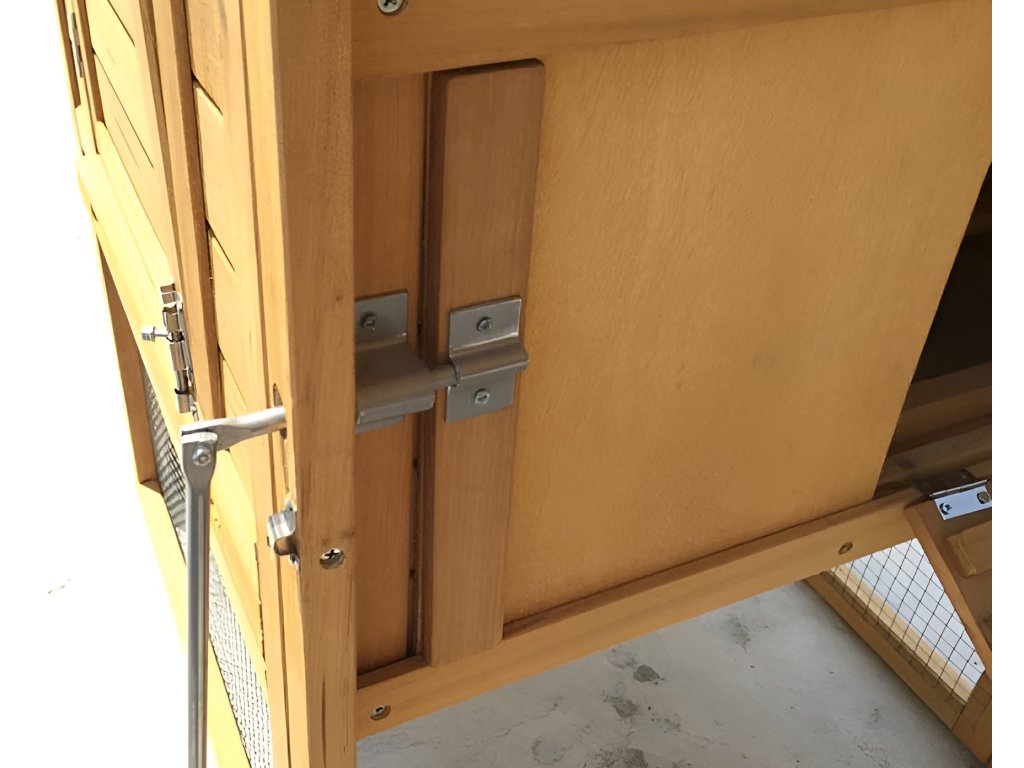 Kurín je veľmi priestranný, výbeh je oddelený od vnútorných priestorov posuvnými dvierkami s madlom umožňujúcim otváranie zvonku bez nutnosti vstupu do kurína.