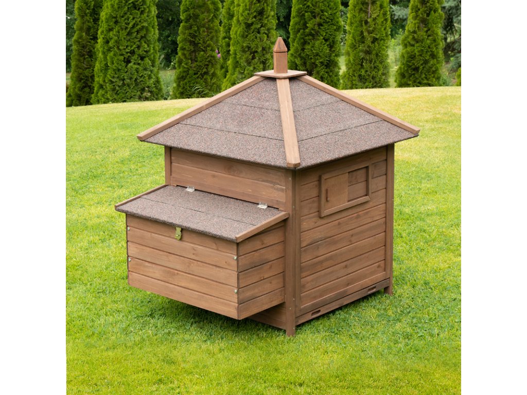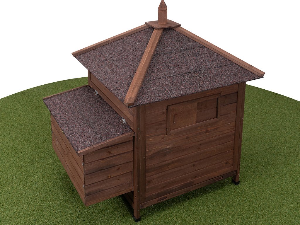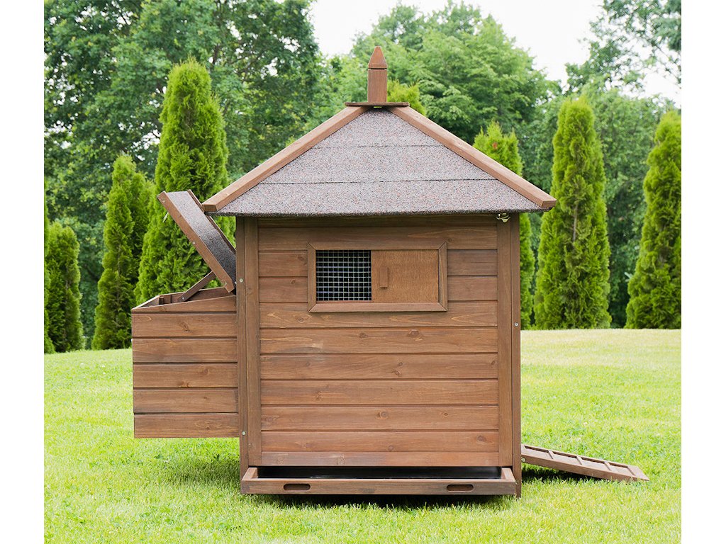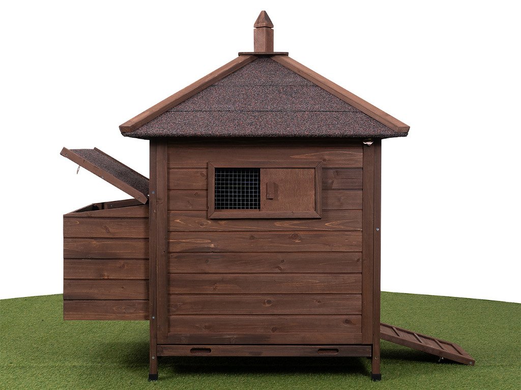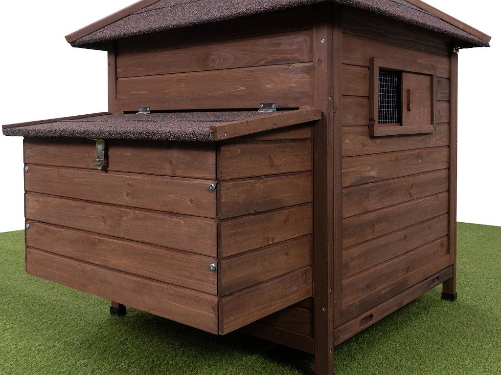 Niet divu! Pretože drevo odolné voči zime, okno s pozinkovaným drôtom, strecha z asfaltovej lepenky odolného voči poveternostným vplyvom a samostatné hniezdo na znášku, vytvárajú tie najlepšie podmienky pre dlhý a šťastný život kurčiat.