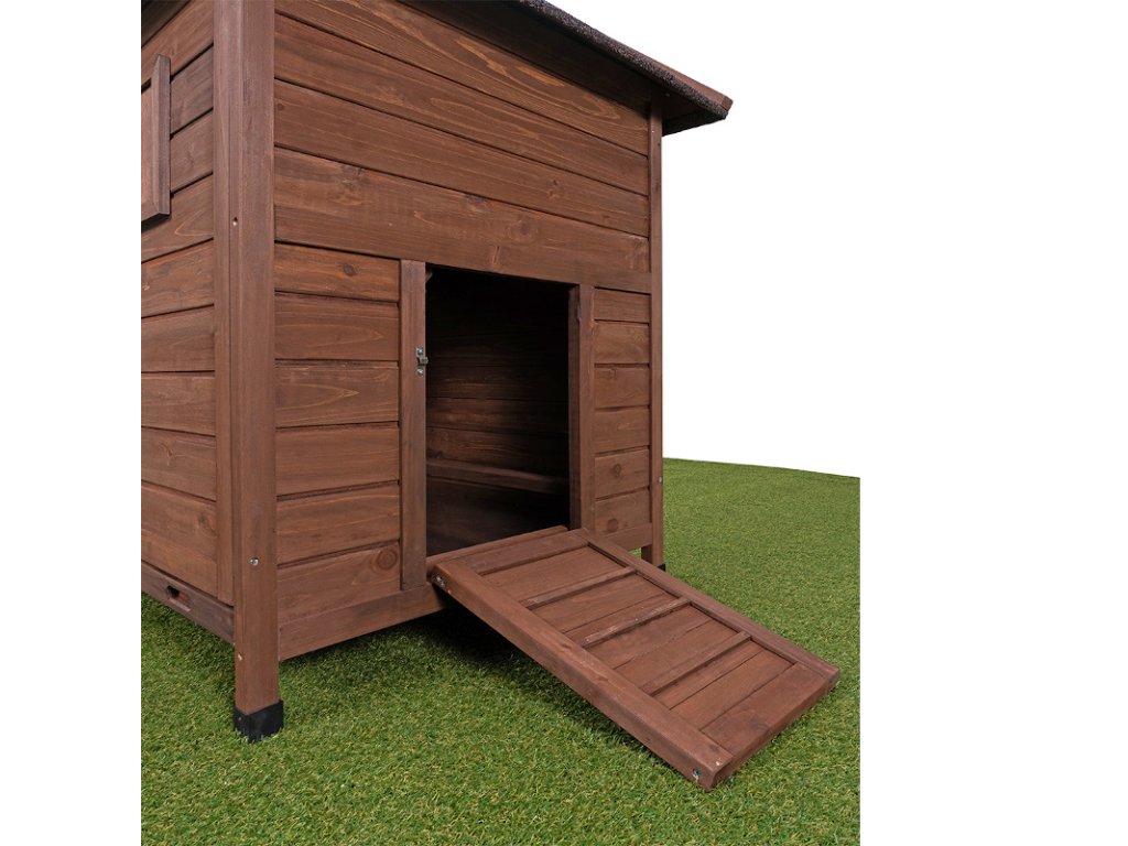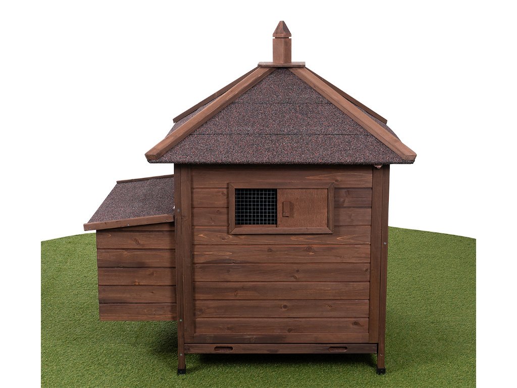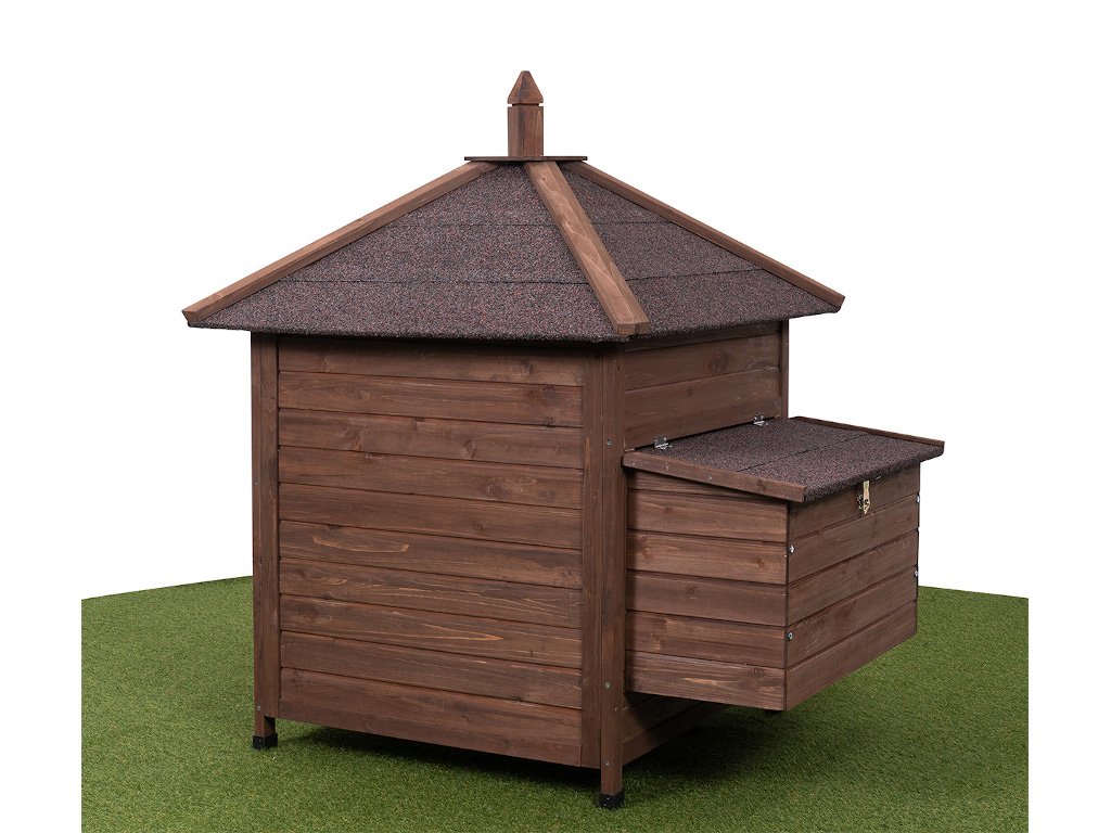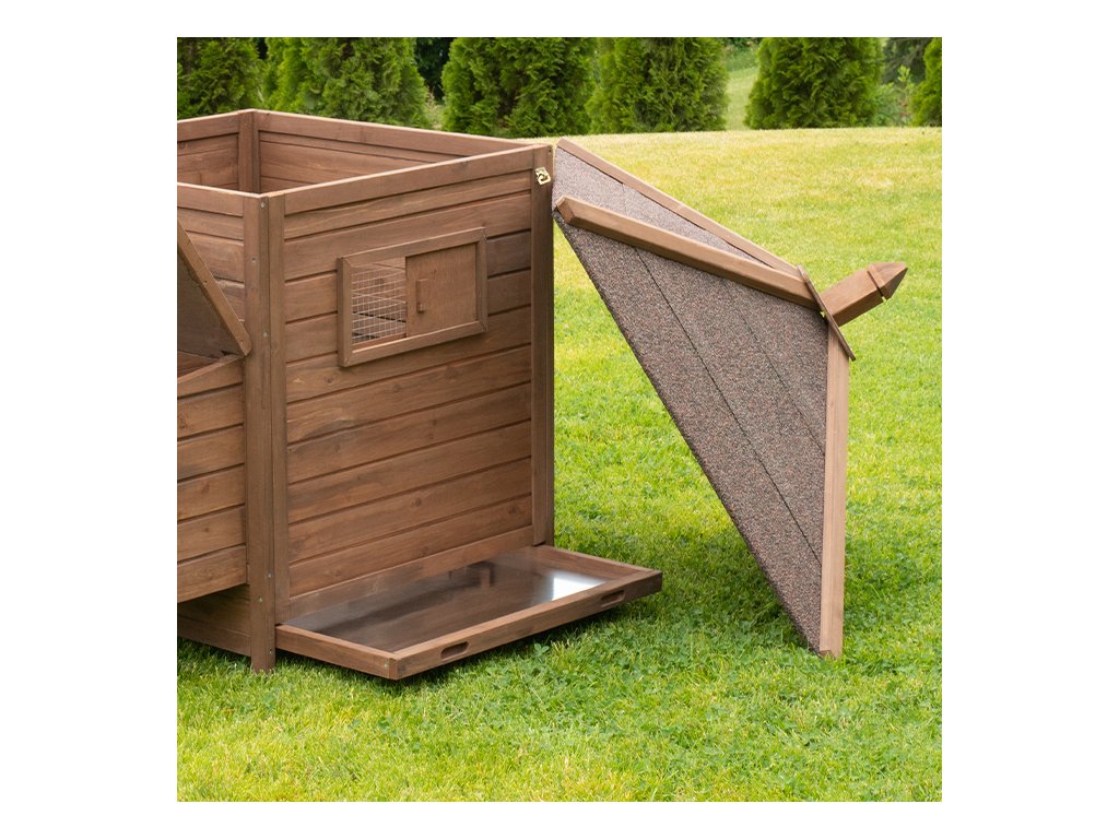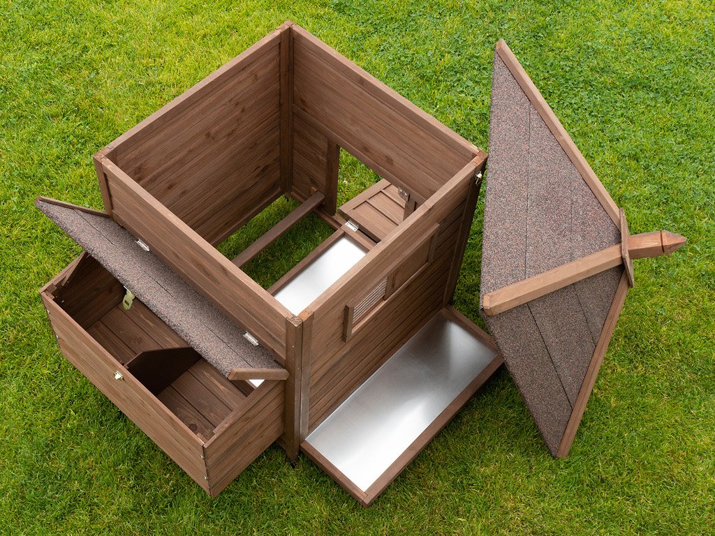 Niet divu! Pretože drevo odolné voči zime, okno s pozinkovaným drôtom, strecha z asfaltovej lepenky odolného voči poveternostným vplyvom a samostatné hniezdo na znášku, vytvárajú tie najlepšie podmienky pre dlhý a šťastný život kurčiat.