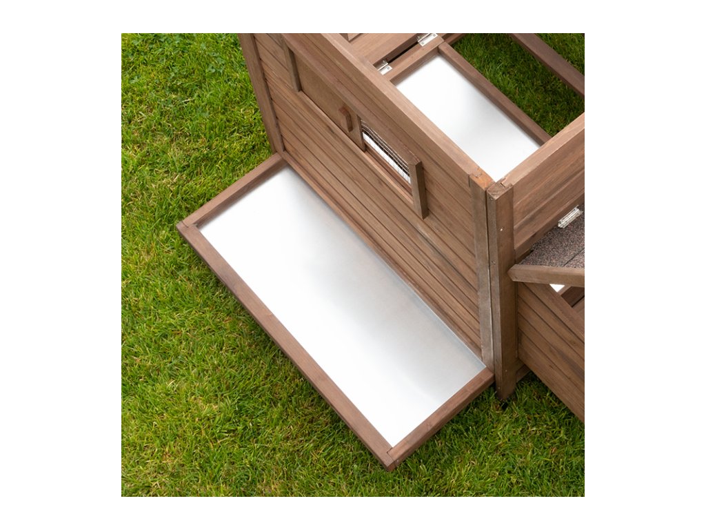 S výsuvnou zásuvkou vyčistíte kurník bleskovo. V kurníku je dôležitou otázkou čistota a hygiena. Vďaka výsuvnej zásuvke, ktorá sa nachádza priamo pod podlahou kurníku, je čistenie pre vás jednoduché, rýchle a pohodlné a praktické.