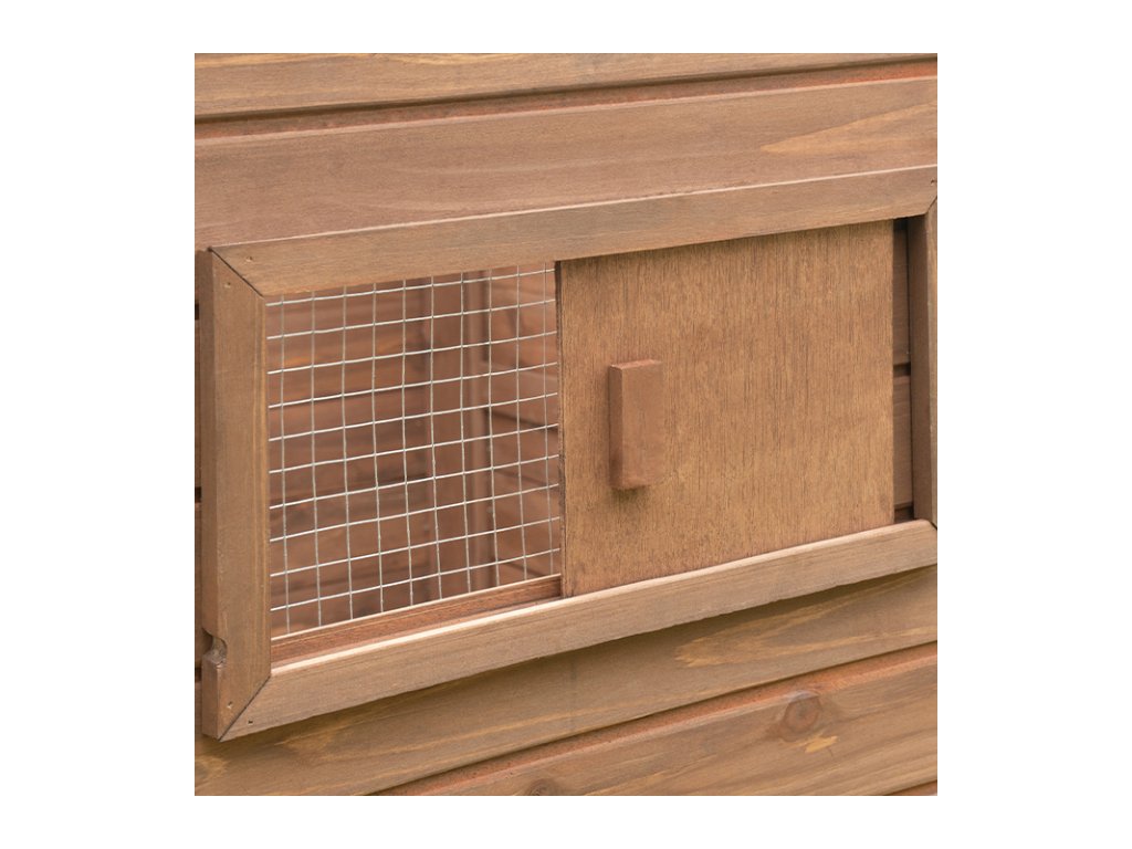Veľa čerstvého vzduchu a slnečného svetla vás udrží v zdraví. To, čo platí pre nás ľudí, platí rovnako pre našich operených priateľov. Drevený kurník MyAnimal je preto vybavený drôteným pozinkovaným oknom. Do voliéry sa tak počas dňa dostane dostatok svetla a vzduchu. Pre nerušený spánok je možné okno uzavrieť posuvnou roletou. Nezáleží na tom, či je deň alebo noc: vaše sliepky sa budú cítiť ako doma.