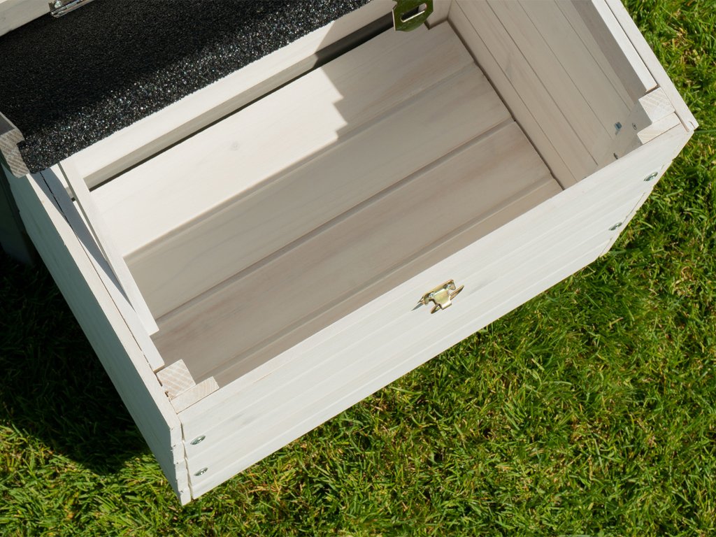 Na Veľkú noc je hľadanie vajíčok samozrejme stále zábavné. Kto však každé ráno zbiera čerstvé vajcia svojich sliepok, zvyčajne si chce ušetriť dlhé hľadanie. Kurník MH-29 je preto vybavený samostatným hniezdom na znášku . Hniezdna búdka s rozmermi 50 x 30 x 35 cm sa nachádza oproti vchodu a ponúka sliepkam dostatok súkromia na znášanie vajec. Tu sa hydina rada sťahuje. Ďalší plusový bod: vajíčka nie sú len tak rozhádzané a schované niekde v kurníku. Vďaka tomu je to pre vás obzvlášť jednoduché: stačí zložiť strechu hniezdnej búdky a môžete sa dostať k lahodným, čerstvo zneseným vajíčkam.