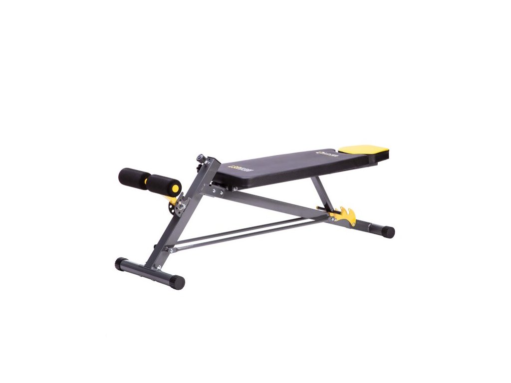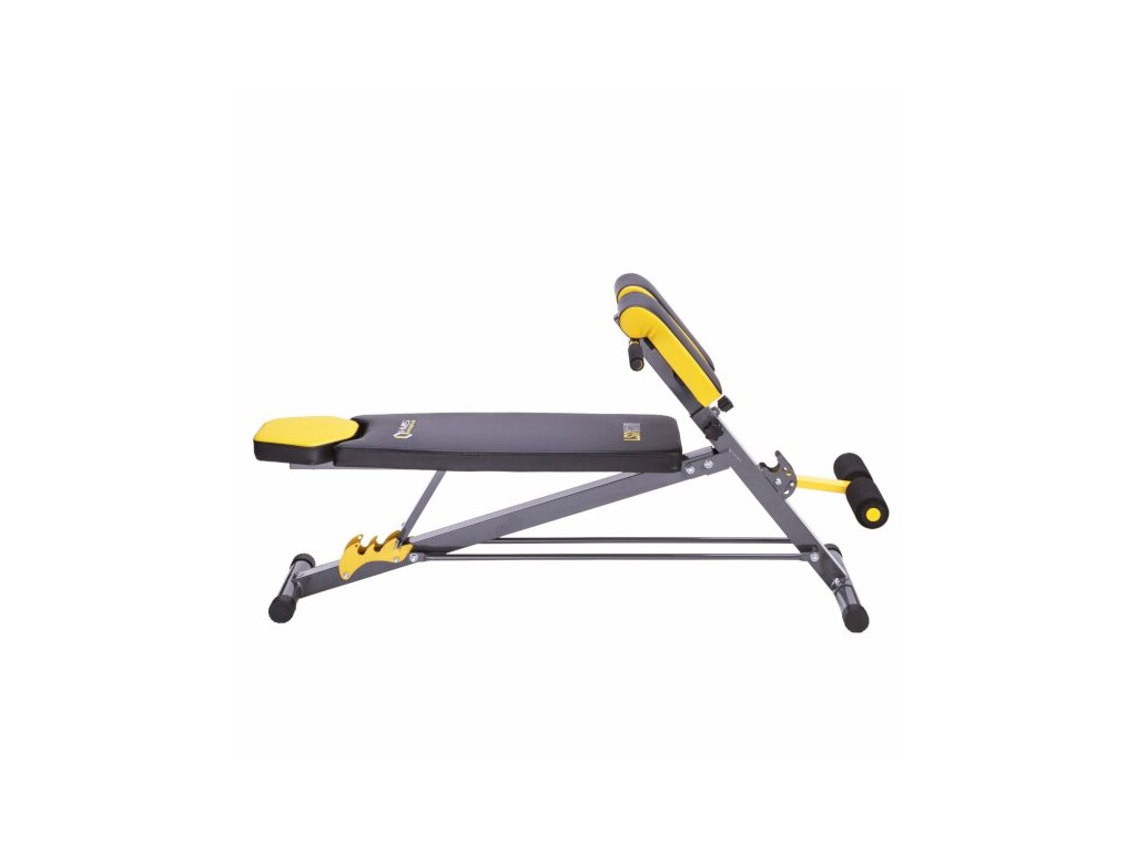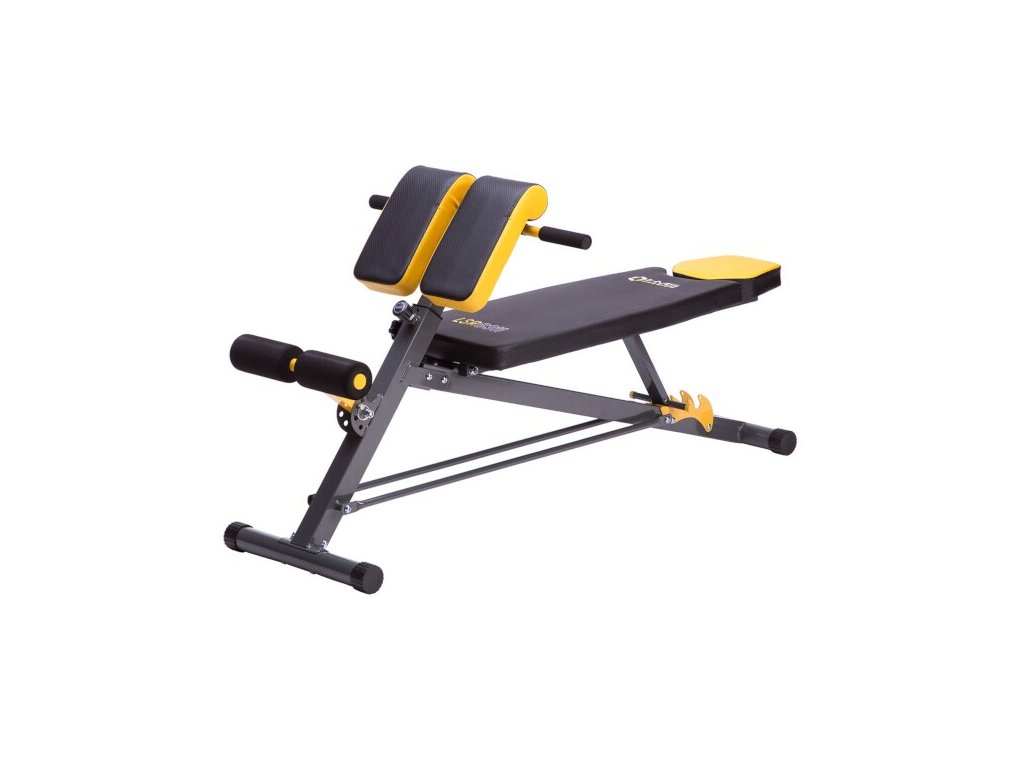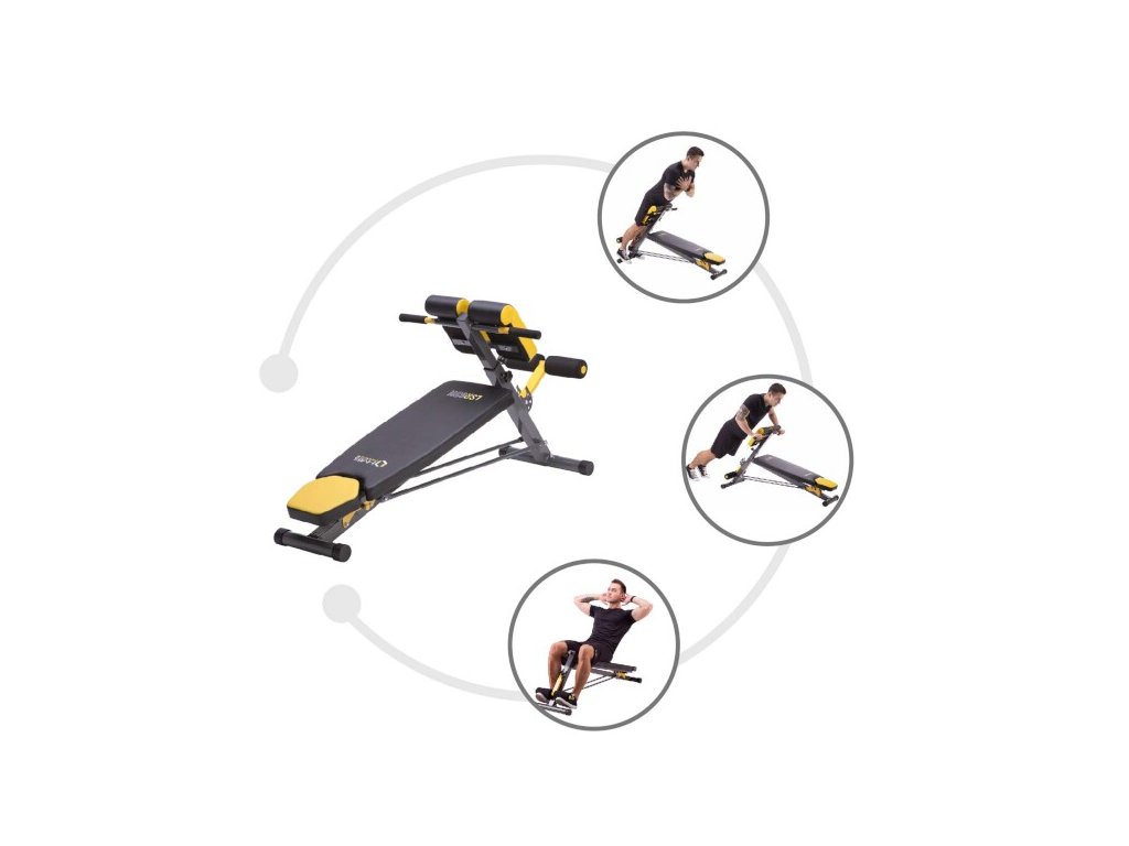 Chrbtová opierka je nastaviteľná do 3 polôh, v horizontálnej polohe možno na lavičke vykonávať väčšinu cvikov s činkami, ak je chrbtová opierka nastavená do záporného uhla, získame šikmú lavičku na posilňovanie brucha.