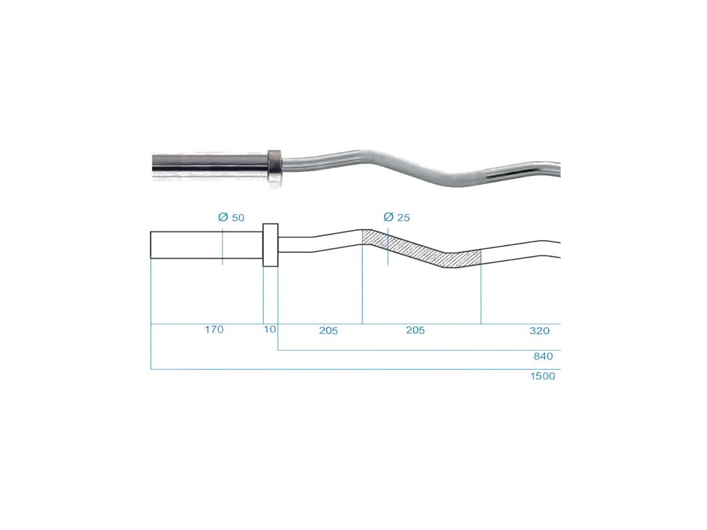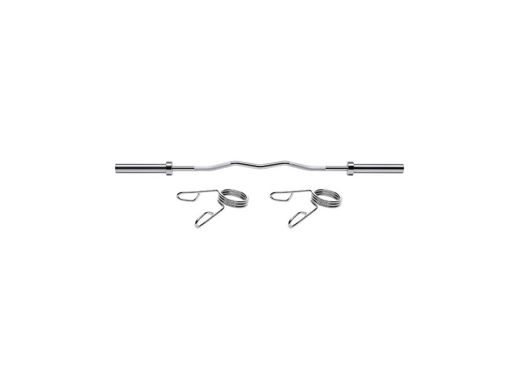 Súčasťou súpravy sú dva pružinové uzávery, ktoré zabezpečujú stabilné rozloženie záťaže. Povrch hriadeľa je vrúbkovaný pre pevný a pohodlný úchop, pričom priemer úchopovej časti je 28 mm, čo zaručuje komfort aj odolnosť počas cvičenia.