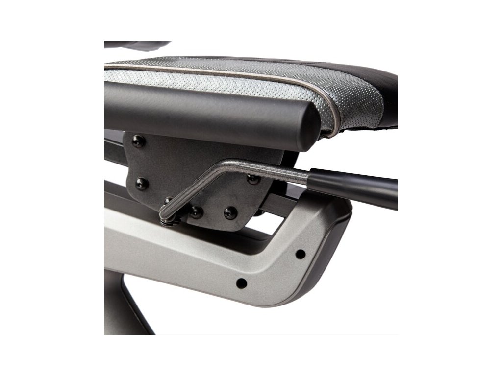 Pre maximálne pohodlie počas tréningu je trenažér R6019-i vybavený pohodlným sedadlom, ktoré je plynulo posuvné. Predné stabilizátor má transportné kolieska, na zadnom stabilizátora nájdete 2 skrutkovacie nožičky pre vyrovnanie prístroja do roviny a madlo pre ľahký transport.