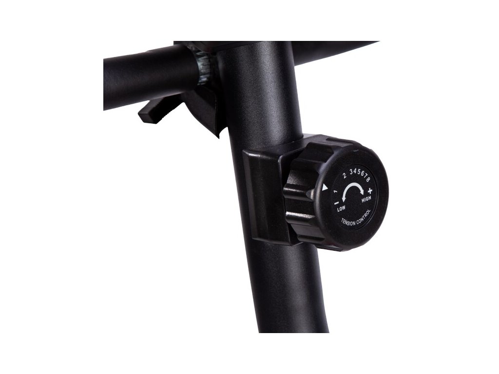 Regulácia odporu sa prevádza mechanicky otáčaním kolieska na stĺpiku riadidiel. K výberu je 8 stupňov. Prehľadný displej počítača zobrazuje všetky dáta dôležité pre tréning (čas, vzdialenosť, rýchlosť, kalórie a tepová frekvencia). Počítač je naviac vybavený šikovnou odkladaciou plochou pre Vaše mobilné zaradenia. Tepová frekvencia je snímaná pomocou elektród v riadidlách.