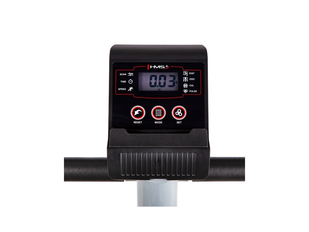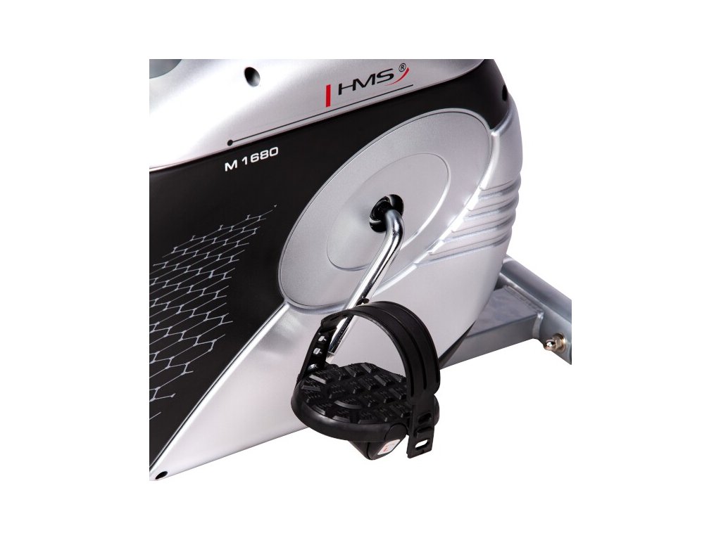 Magnetický rotoped HMS M1680 je navrhnutý pre tréning v domácom prostredí. Medzi prednosti modelu M1680 patrí robustná konštrukcia, vertikálne nastaviteľné sedlo a 6 kilogramové záťažové koleso. Regulácia odporu sa prevádza mechanicky otáčaním kolieska na stĺpiku riadidiel. K výberu je 8 stupňov. Prehľadný displej počítača zobrazuje všetky dáta dôležitá pre tréning (čas, vzdialenosť, rýchlosť, kalórie a tepová frekvencia). Počítač je naviac vybavený šikovnou odkladacio plochou pre Vaše mobilné zaradenia. Tepová frekvencia je snímaná pomocou elektród v riadidlách.
