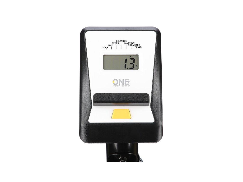 - počítač zobrazuje: čas, vzdialenosť, celková vzdialenosť, rýchlosť, kalórie, pulz, scan