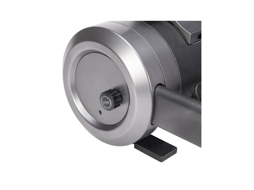 Systém záťaže tvorí ťažné lano, ktoré sa navíja pomocou pružiny späť do bubna. Pri zatiahnutí za lano sa roztáča 3 kilogramové záťažové koleso, ktorého pohyb je obmedzovaný elektronicky nastaviteľnou, magnetickou brzdou. Regulácia záťaže sa ovláda tlačidlami na ovládacom paneli a na výber máte zo 6-tich úrovní. Konzola je samozrejme vybavená prehľadným displejom, ktorý má tri segmenty. Prvý segment zobrazuje čas tréningu, vzdialenosť a počet príťahov. Druhý segment zobrazuje počet príťahov za minútu a čas na 500 metrov, tretí segment zobrazuje aktuálne zvolenú záťaž. Pod displejom nájdeme samotné tlačidlá pre zmenu záťaže a 2 tlačidlá pre manuálne spustenie, zastavenie, alebo pozastavenie tréningu.