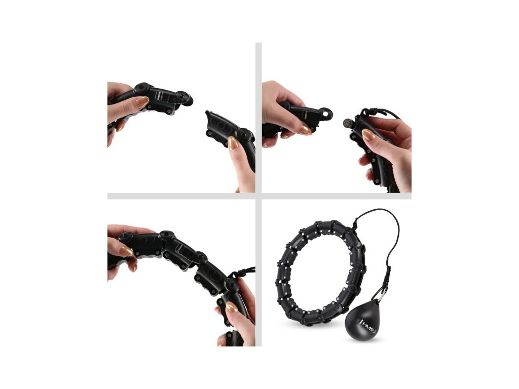 Funkcia obruče HMS HHW11 je veľmi jednoduchá. Konštrukcia sa skladá z 26 rovnakých častí, ktoré sa do seba skladajú. Aby ste obruč uzavreli, musíte použiť aspoň 14 dielov, ktoré potom vytvoria kruh s vnútorným priemerom 20 cm, ak spojíte všetkých 26 dielov, potom bude vnútorný priemer 42 cm. Model HHW11 je vhodný pre obvody pása od 60 do 126 centimetrov. Jednotlivé diely tvoria koľajnicu, do ktorej sa pred uzavretím vloží kotva, ktorá je vybavená štyrmi kolieskami s guľôčkovými ložiskami. Ku kotve je pomocou dĺžkovo nastaviteľného povrázku pripevnené závažie s hmotnosťou 300 gramov. Povrázok sa dá nastaviť na dĺžku 20 až 30 centimetrov a zmenou dĺžky povrázku sa upravuje výsledná odstredivá sila závažia - čím dlhší je povrázok, tým "ťažšie" bude závažie.