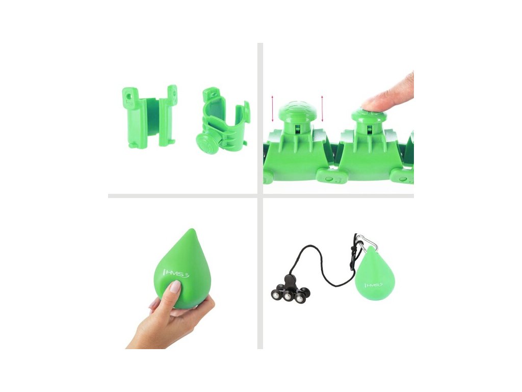 Funkcia obruče HMS HHW12 je veľmi jednoduchá. Dizajn pozostáva z 28 rovnakých častí, ktoré sa skladajú jedna do druhej. Aby ste obruč uzavreli, musíte použiť aspoň 14 kusov, ktoré potom vytvoria kruh s vnútorným priemerom 15 cm, ak spojíte všetkých 28 kusov, potom bude vnútorný priemer 40 cm. Model HHW12 je vhodný pre obvody pása od 46 do 125 cm. Jednotlivé diely uzatvára koľajnica, do ktorej sa pred zatvorením vloží kotva, ktorá je vybavená šiestimi kolieskami s guľôčkovými ložiskami. Ku kotve je pomocou dĺžkovo nastaviteľného povrázku pripevnené závažie s hmotnosťou 400 gramov. Šnúru možno nastaviť na dĺžku 22 až 38 cm a zmenou dĺžky šnúry sa upravuje výsledná odstredivá sila závažia - čím dlhšia je šnúra, tým "ťažšie" bude závažie.