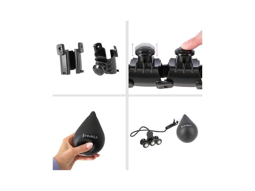 Funkcia obruče HMS HHW12 je veľmi jednoduchá. Konštrukcia sa skladá z 28 rovnakých častí, ktoré sa skladajú do seba. Aby ste obruč uzavreli, musíte použiť najmenej 14 dielov, ktoré potom vytvoria kruh s vnútorným priemerom 15 cm, ak spojíte všetkých 28 dielov, potom bude vnútorný priemer 40 cm. Model HHW12 je vhodný pre obvody pása od 46 do 125 centimetrov. Jednotlivé diely uzatvára koľajnica, do ktorej sa pred uzavretím vloží kotva, ktorá je vybavená šiestimi kolieskami s guličkovými ložiskami. Ku kotve je pomocou dĺžkovo nastaviteľného povrázku pripevnené závažie s hmotnosťou 400 gramov. Šnúru možno nastaviť na dĺžku 22 až 38 cm a zmenou dĺžky šnúry sa upravuje výsledná odstredivá sila závažia - čím dlhšia je šnúra, tým "ťažšie" bude závažie.