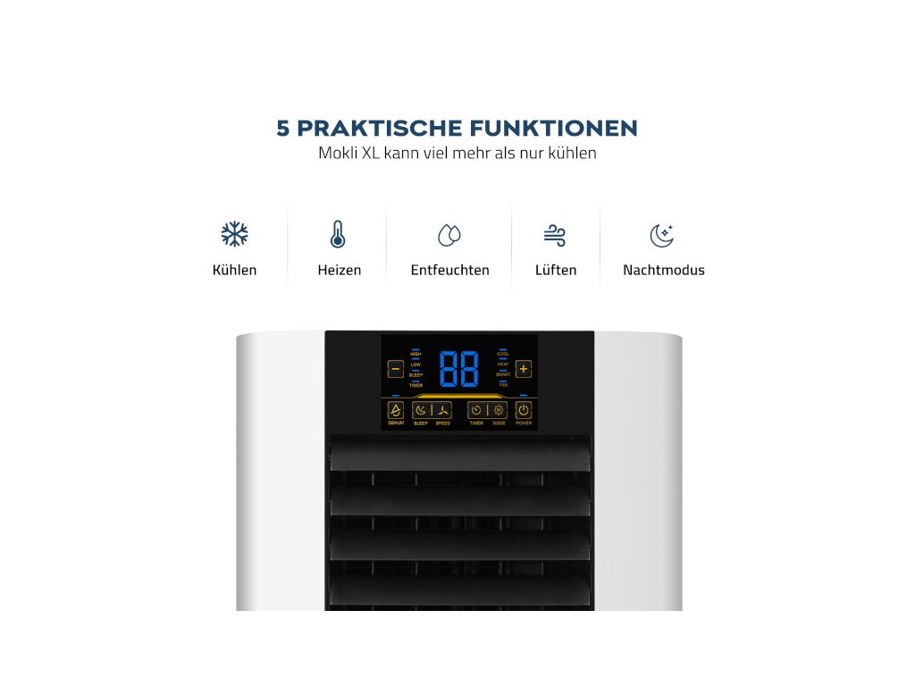 V horúcich letách sa chladné miestnosti stávajú nenahraditeľným útočiskom. Nová klimatizácia Mokli XL Vám umožní ľahko dosiahnuť požadovanú teplotu v akejkoľvek miestnosti. Prístroj je vysoko efektívny a energeticky úsporný.