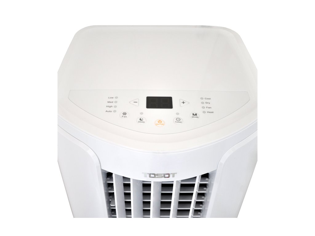 Prenosná mobilná klimatizácia TOSOT je určená pre chladenie bytových aj nebytových priestorov v letných mesiacoch ako aj na kúrenie počas chladných dní. S maximálnym výkon 3,5 kW a prietokom vzduchu 360 m³/h dokáže ochladiť (v lete) alebo vykúriť (v zime) priestory do 100 m³.