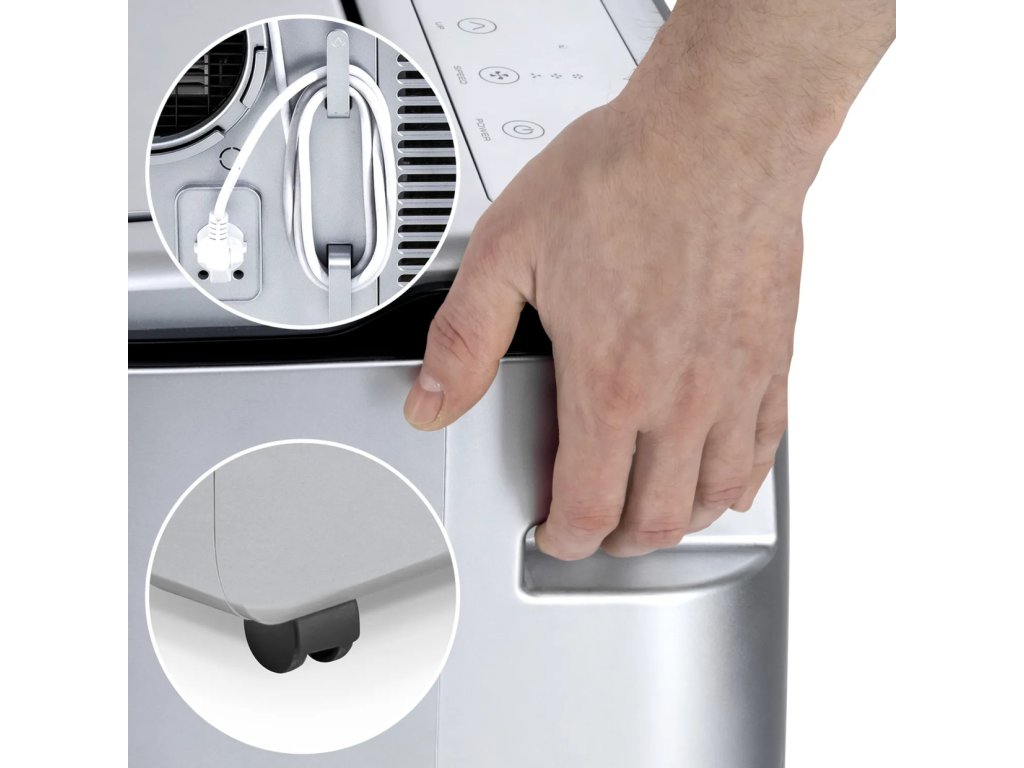Zariadenie dokáže odstrániť až 1,5 litra vlhkosti za hodinu, čím výrazne zlepšuje kvalitu vzduchu a zabraňuje tvorbe plesní. Vďaka inteligentnému recyklačnému systému sa kondenzovaná voda používa na chladenie kondenzátora a následne sa vo veľkej miere odparuje. Zbernú nádobu preto treba vyprázdňovať len výnimočne.