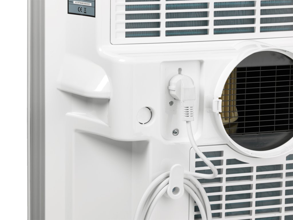 Pre ľahké premiestňovanie medzi miestnosťami je klimatizácia vybavená kolieskami a praktickým držadlom na uloženie diaľkového ovládača. Na zadnej strane sa nachádza vzduchový filter, ktorý účinne zachytáva prach a pomáha udržiavať čisté ovzdušie.