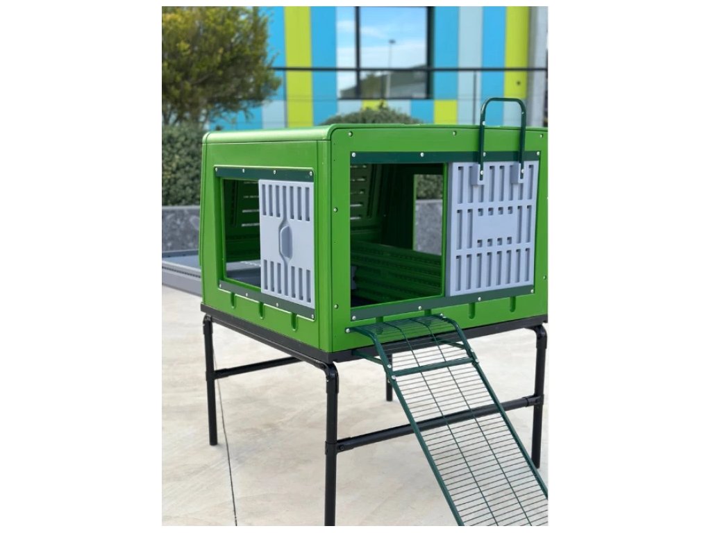 Súčasťou je výsuvný trusník, vďaka ktorému je pravidelné čistenie otázkou niekoľkých minút. Vetracie otvory podporujú prúdenie vzduchu a pomáhajú obmedzovať vlhkosť vo vnútri kurníka. Konštrukcia stojí na nožičkách, čo zlepšuje odvetrávanie aj zo spodnej časti a chráni pred zemnou vlhkosťou.