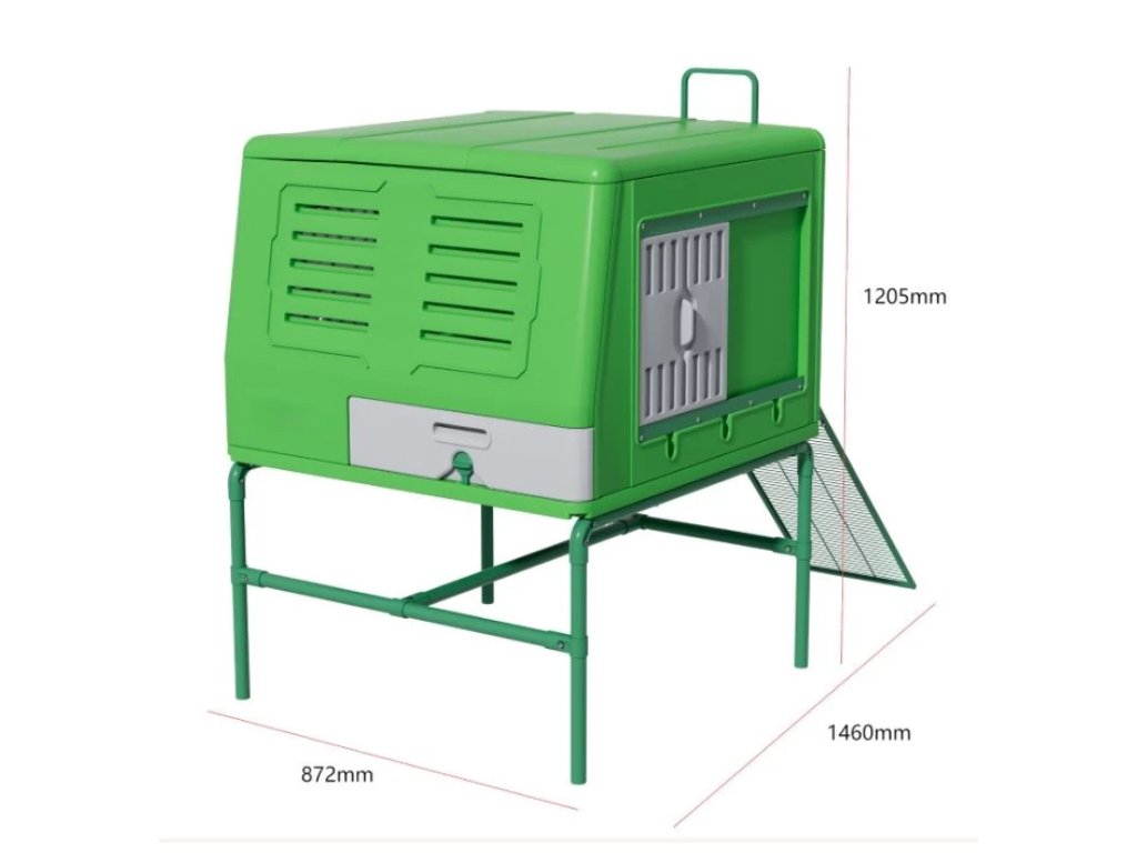 Tento model predstavuje kombináciu funkčnosti, hygieny a moderného designu v kompaktnom prevedení – ideálna voľba pre chovateľov, ktorí chcú mať svoje sliepky v bezpečí a bez zbytočnej práce navyše.