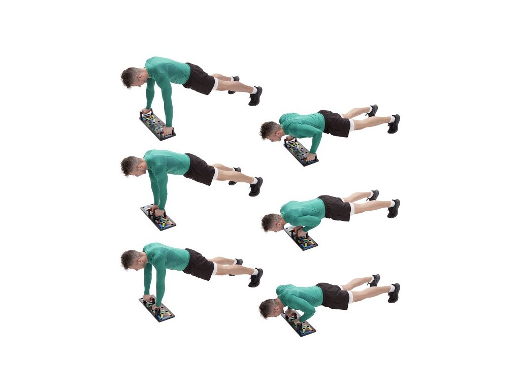 - pri umiestnení podpier do zelených otvorov sa budú počas klikovania precvičovať tricepsy