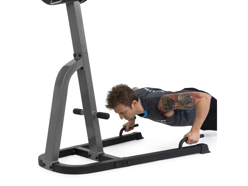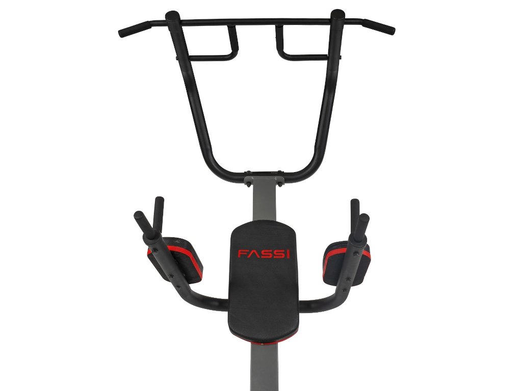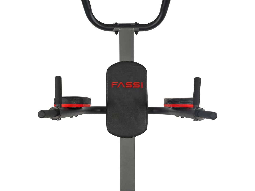 Viacúčelová hrazda Fassi Power 90 je špeciálne navrhnutá tak, aby zahŕňala precvičovanie horných svalov a brucha. Je veľmi všestranná a pohodlná a môžete na nej vykonávať rôzne cviky, ako sú príťahy s rôznymi rukoväťami: široké pre laty, reverzné s dôrazom na biceps, neutrálne a dokonca zmiešané pre zameranie aj na brušné svaly a hornú časť chrbta. Nakoniec vám rukoväte umiestnené v dolnej časti hrazdy umožnia dokonalé vykonávanie klasických klikov na rukách.