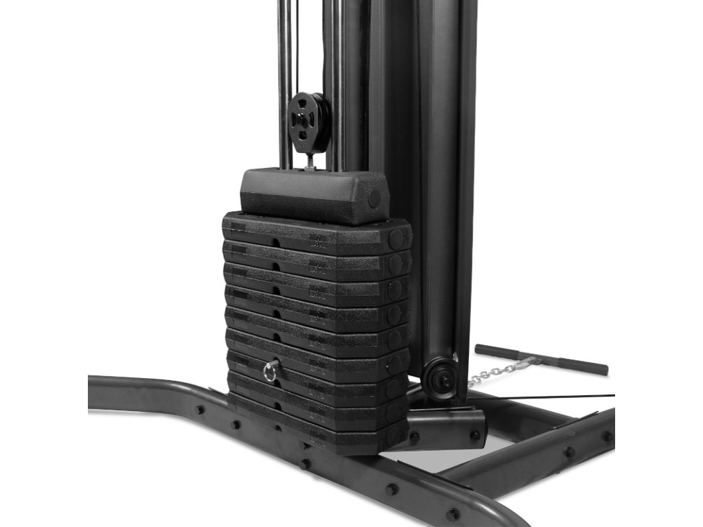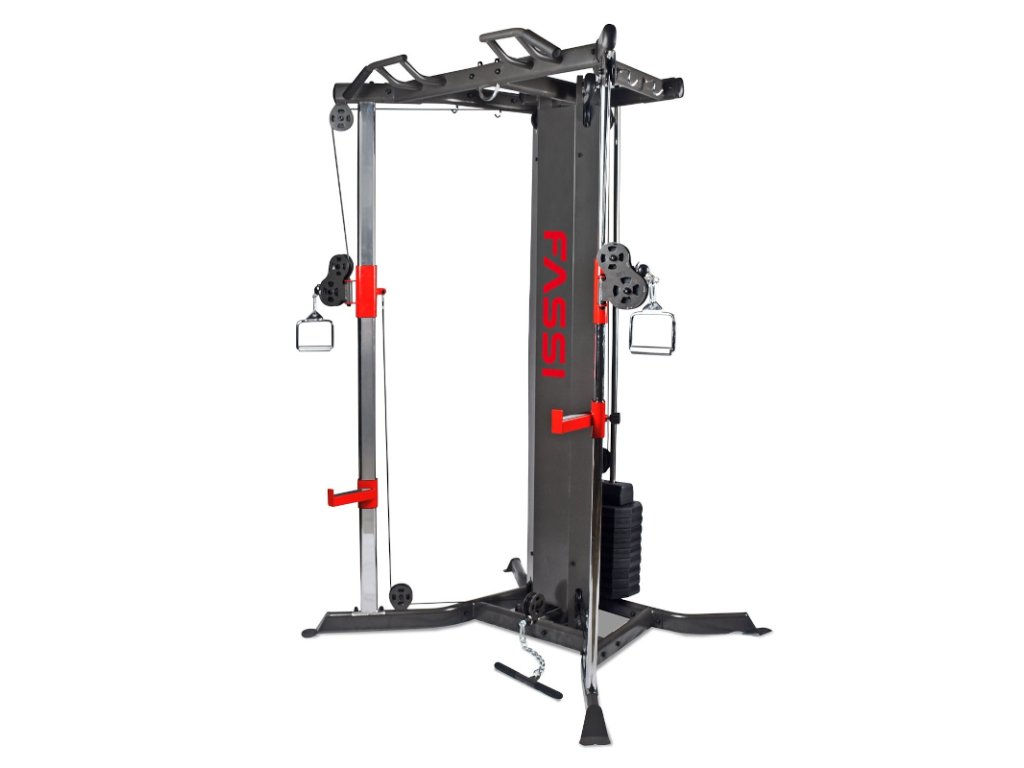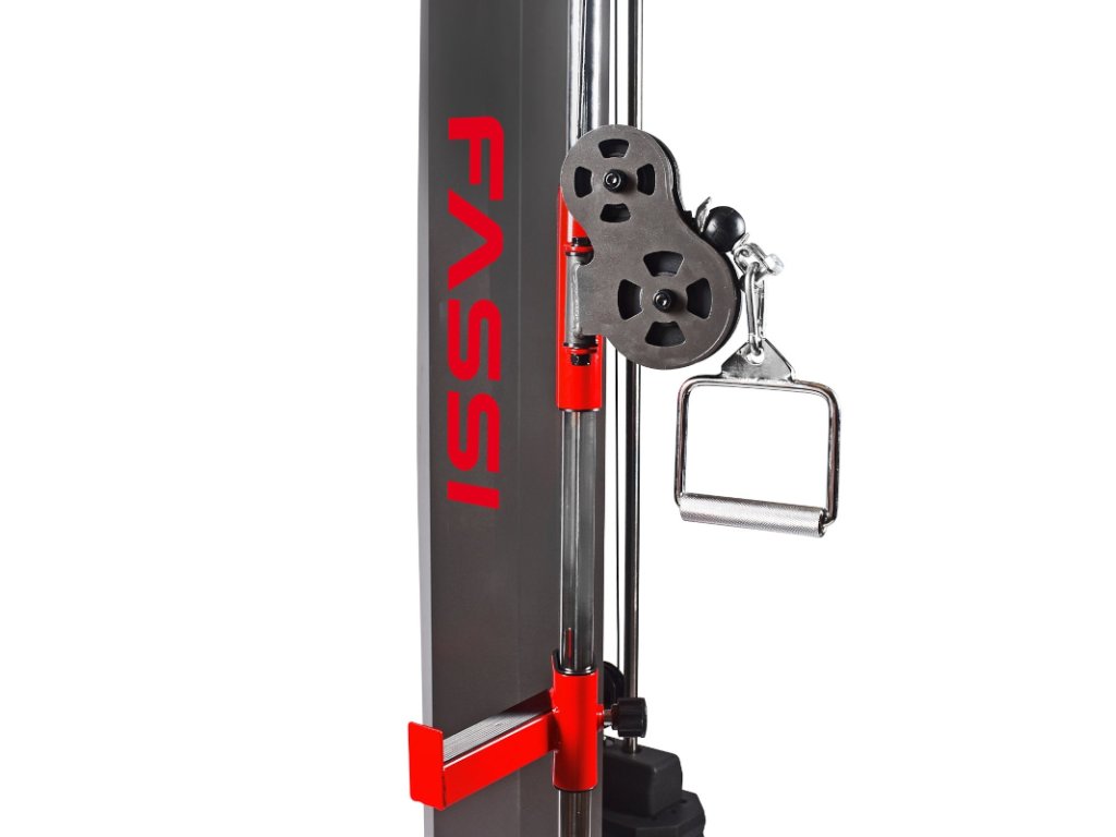 Fassi POWER 390 je stroj, ktorý je navrhnutý so zosilnenou konštrukciou z oceľových rúrok (8 x 4 cm) a vybavený systémom kladiek a kladiek s guličkovými ložiskami zaručuje plynulé a stabilné pohyby počas každého cvičenia. Prítomnosť opletených lán s polyuretánovým povlakom (priemer 5 cm) a kladiek, ktoré možno nastaviť do 20 polôh od 25 cm do 177 cm nad zemou, zabezpečuje mimoriadnu flexibilitu na prispôsobenie tréningu. Zariadenie obsahuje 45 kg závažia rozdelené do 10 dosiek po 4,5 kg, ako aj základné príslušenstvo, ako sú trakčné členky a rukoväte kladky, ktoré umožňujú širokú škálu cvičení. POWER 390 umožňuje precízne a efektívne trénovať všetky hlavné svalové skupiny - od tlakov na hrudník po prsné svaly, od cvikov s vysokou a nízkou kladkou po kopy nohami a príťahy. Vďaka veľkej cvičebnej ploche (148 cm medzi kladkami) a maximálnej dĺžke lanka 240 cm je tento stroj navrhnutý pre pohodlie a jednoduché používanie. Oceľové bezpečnostné tyče s bezpečnostnou skrutkou zvyšujú dodatočnú ochranu počas tréningu, zatiaľ čo robustná konštrukcia podporuje maximálnu hmotnosť používateľa 250 kg, takže je vhodná pre začiatočníkov aj skúsených športovcov. Vďaka kompaktným rozmerom (122,5 x 148 x 219,5 cm) je ideálny do domácich priestorov bez toho, aby sa znížila jeho stabilita alebo výkon. Okrem toho je Fassi POWER 390 certifikovaný podľa smerníc CE a RoHS (EN-957/6), čo zaručuje najvyššie štandardy kvality a bezpečnosti. Fassi POWER 390 je viac než len multifunkčný stroj: je to váš spojenec pri dosahovaní maximálnych výsledkov z hľadiska sily, tonizácie a odporu, a to v pohodlí vášho domova.