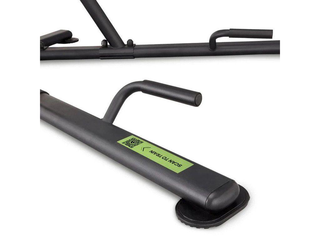 Široká základňa zabezpečuje pevný postoj počas cvičenia a pogumované protišmykové nožičky poskytujú dodatočnú stabilitu aj na hladkých povrchoch. Polstrované opierky chrbta a rúk ti zároveň ponúkajú potrebný komfort, aby si mohol trénovať dlho a intenzívne bez straty opory.