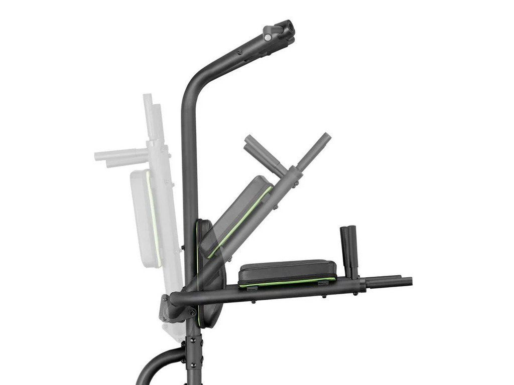 Nastaviteľné opierky rúk: Opierky sú sklopné, čo šetrí miesto, keď Power Tower nepoužívaš.