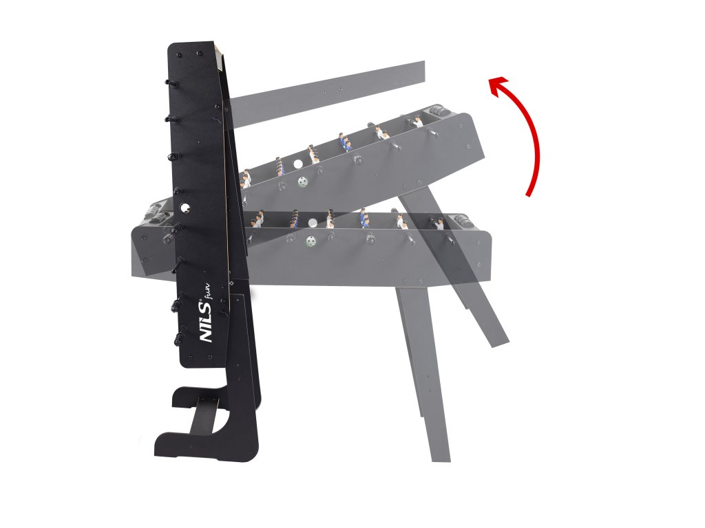 Vďaka jednoduchej montáži a možnosti zloženia sa náš stolný futbal ľahko inštaluje a skladuje. Ak stolný futbal SDGF Arena 1 práve nepoužívate, potom jednoducho zdvihnite dosku a získajte späť cenné miesto vo vašej domácnosti.