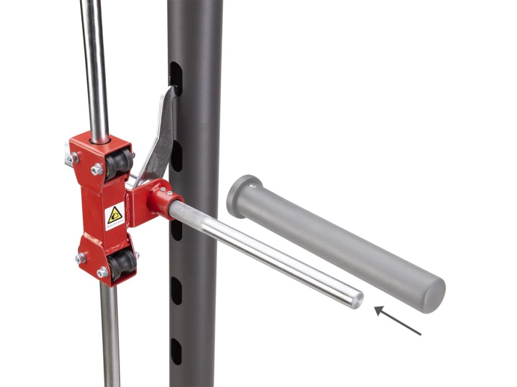 - Bezpečnosť – ak naložíme vyššiu váhu, než dokážeme zdvihnúť, alebo pri vyššom počte opakovaní už nevládzeme činku vytlačiť, stačí malé pootočenie zápästím a os sa -okamžite zaistí. Predídeme tak zraneniu aj poškodeniu kotúčov.