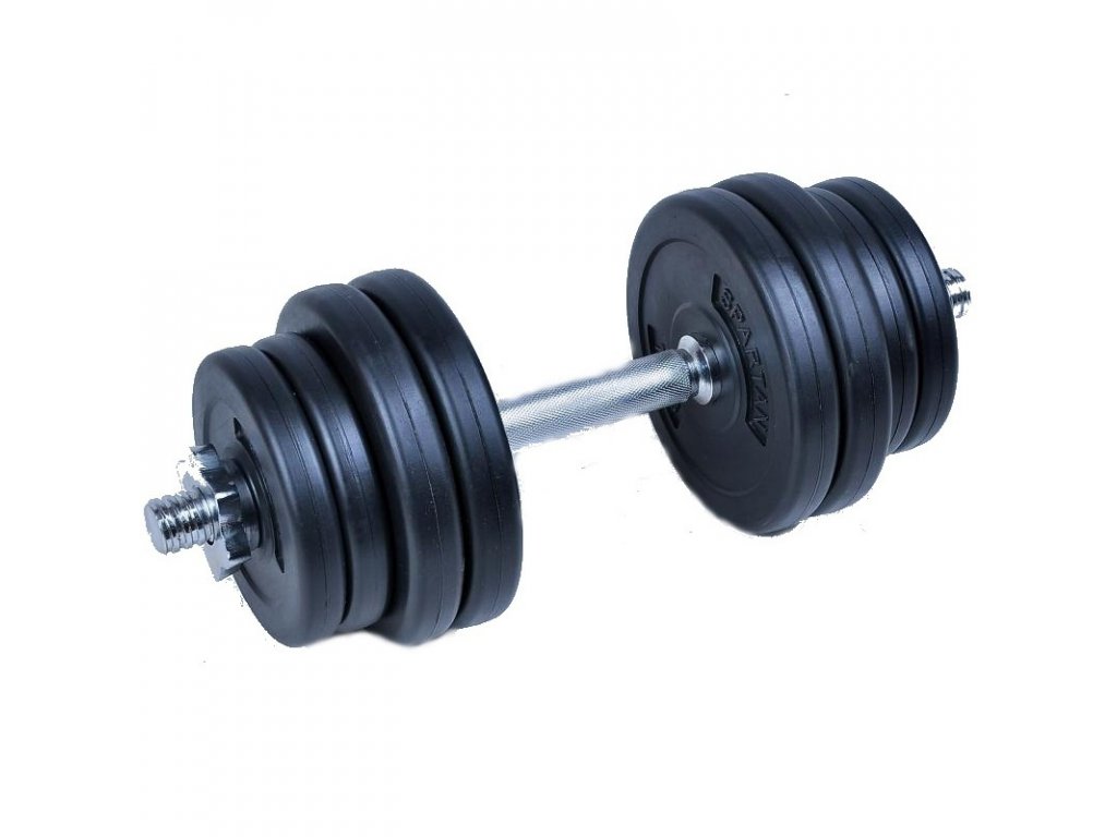 Jednoručný cementový set SPARTAN pozostáva z jednej nakladacej jednoručky s celkovou hmotnosťou 10 kg. Je určený na precvičenie hornej polovice tela v domácom prostredí. Hriadeľ činky s kovovou rukoväťou je vyrobený z kvalitnej ocele. Vďaka závažiam, ktoré sú vyrobené z plastu plneného cementovou náplňou je cenovo dostupný. Jednoducho a veľmi rýchlo si upravíte hmotnosť činky.