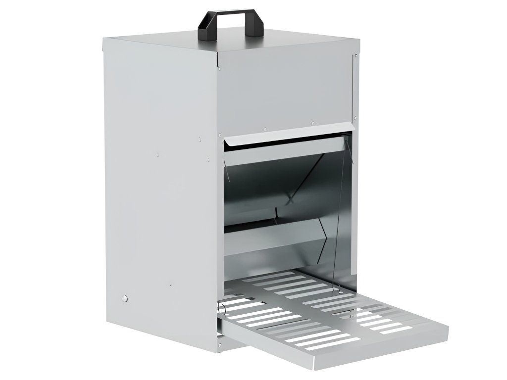 Kŕmidlo je vybavené dvierkami, ktoré sa automaticky otvoria, akonáhle sliepka na kŕmidlo šliapne. Tým je krmivo dostupné iba vašim sliepkam a zostáva chránené pred vonkajšími vplyvmi.